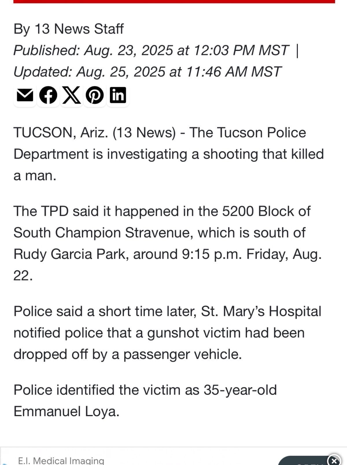 It is with heavy hearts that we share the tragic passing of Emmanuel Loya, who was senselessly taken from us last week. Emmanuel was a beloved son, brother, and friend whose life was cut short far too soon.