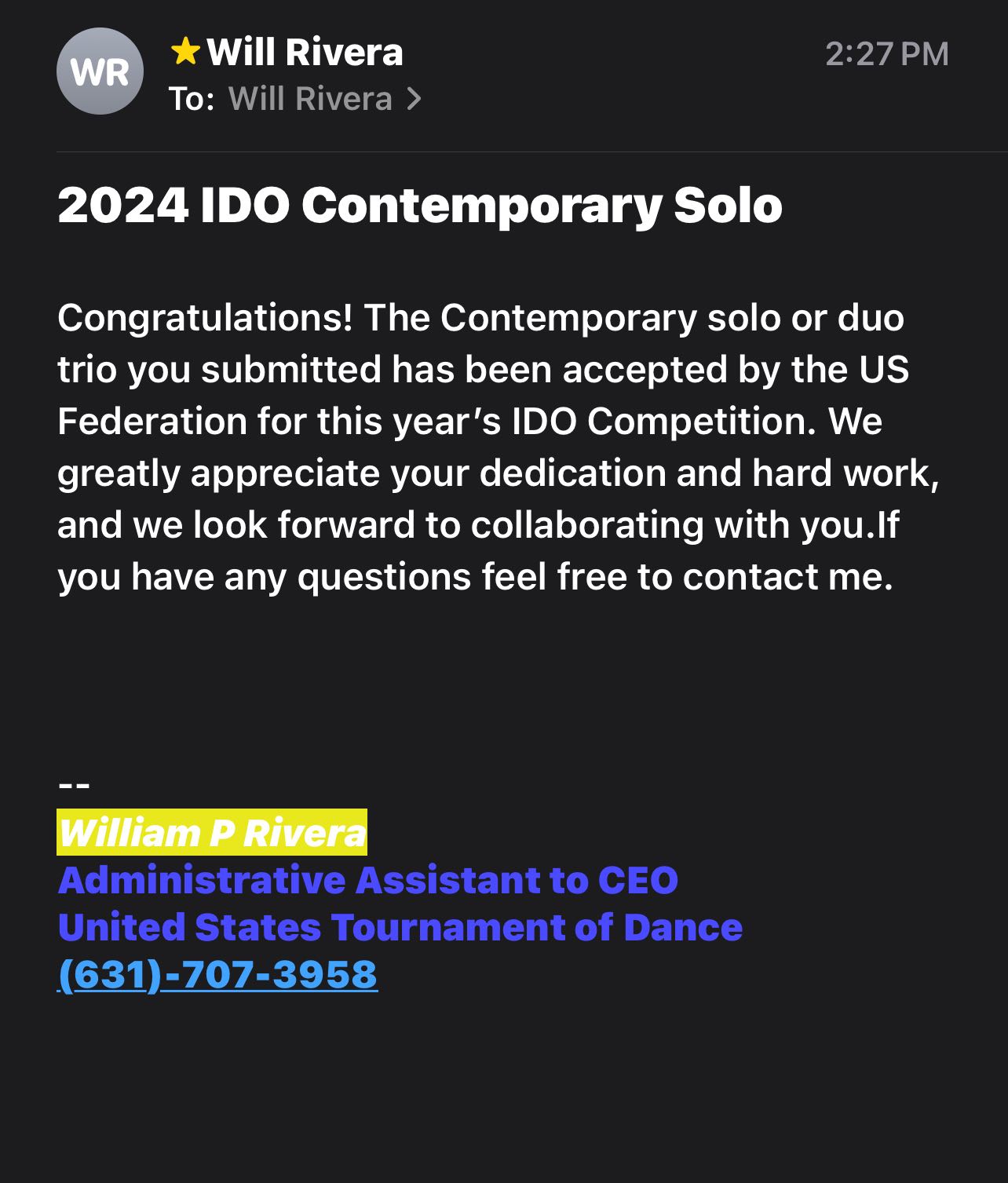 A couple of weeks ago, Abby received an invitation from the IDO/Team USA officials to submit a video audition for a contemporary solo, in addition to the group dances she has already been selected for as part of Team USA. With the help of her choreographer, Bobby Lane, she learned a brand new contemporary solo in just five days and submitted a video audition. Abby is thrilled to announce that her solo has been selected to compete in the solo portion of the championships, alongside her group dances! This adds an exciting new element to her incredible journey!!!