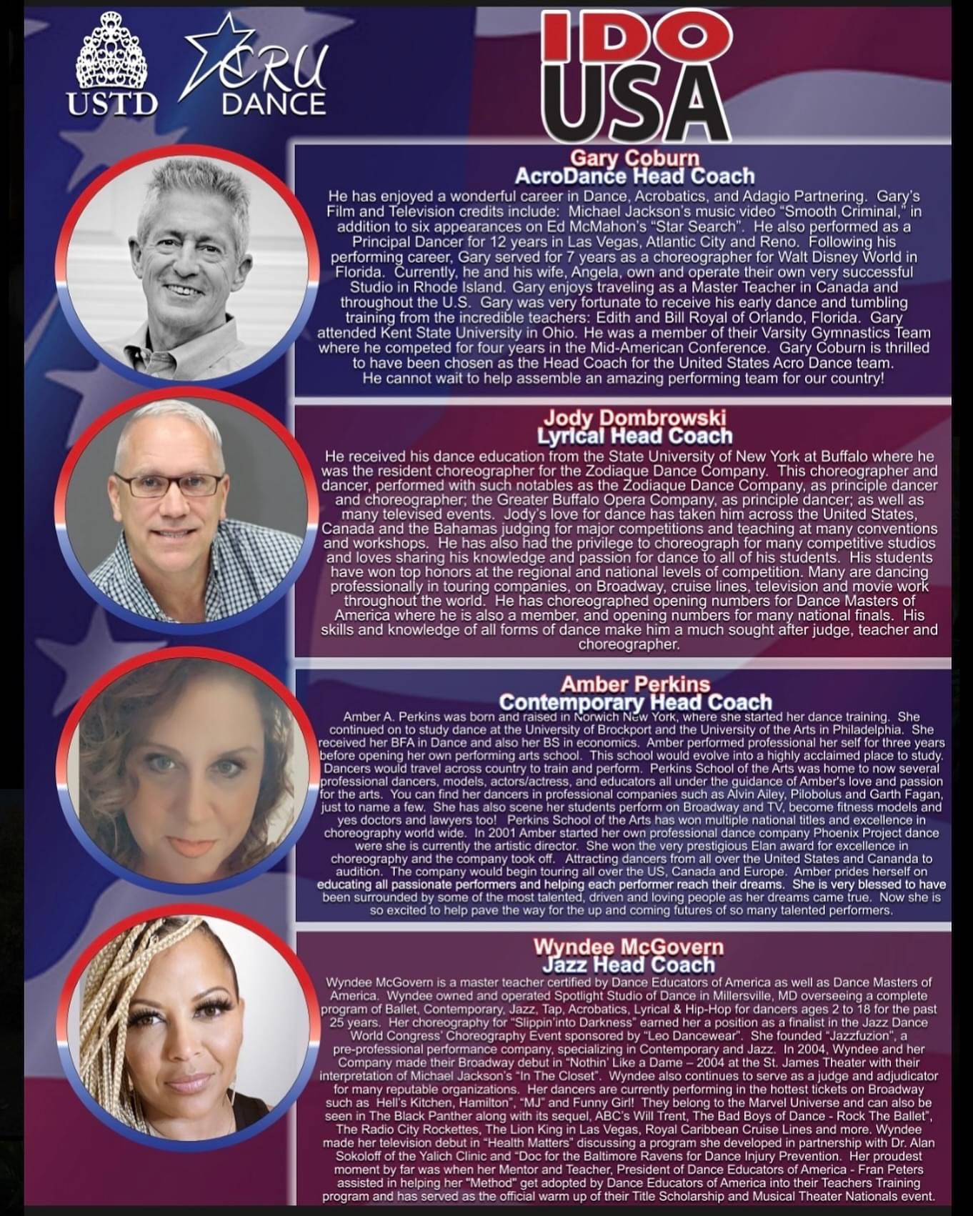 Introducing our IDO Team USAπΊπΈ head coaches!! These incredibly talented choreographers and coaches have been working so hard with our dancer athletes preparing them for the World Championships in Poland! Abby is honored to have the opportunity to work with them!