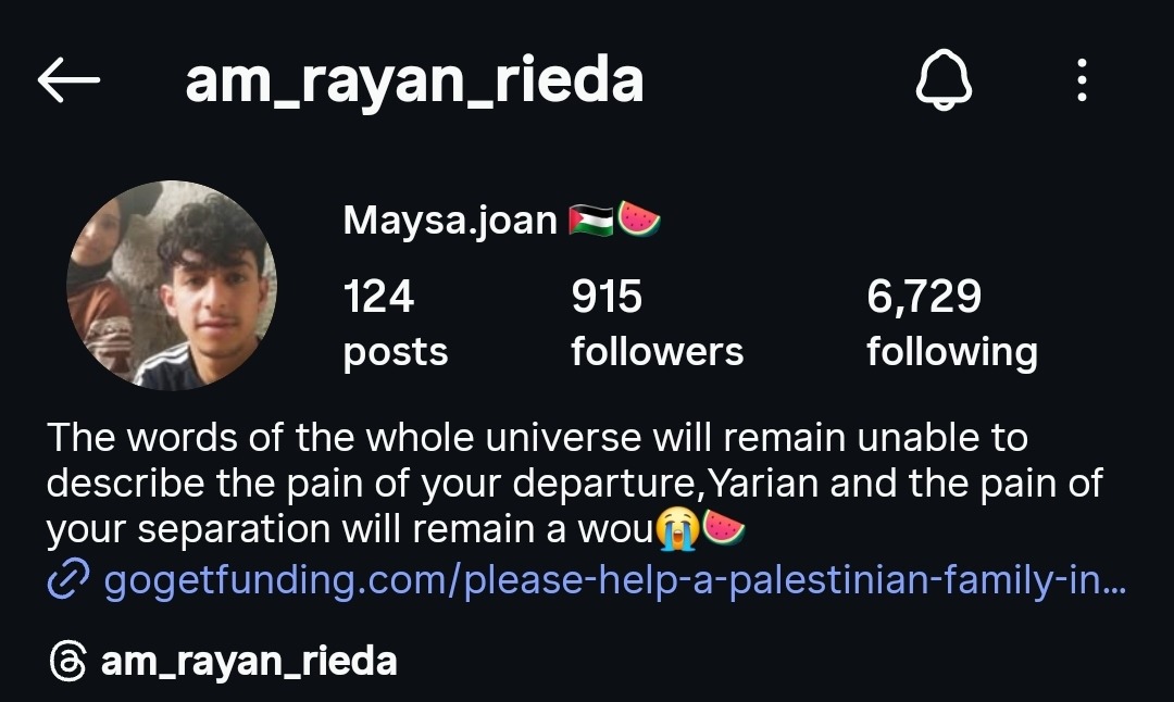 Hello, I'm Mansour from Khan Younis in the Gaza Strip. I'm living through a tragic situation due to the harsh conditions of war. I lost my beloved son, Rayan, and many of my relatives and cousins in this war, along with half my family. Now, my remaining family and I are facing starvation due to the lack of water, electricity, food, and medicine. I have a campaign on the GoFundMe platform, and I hope you will donate to me through this link… A dollar could save my family.