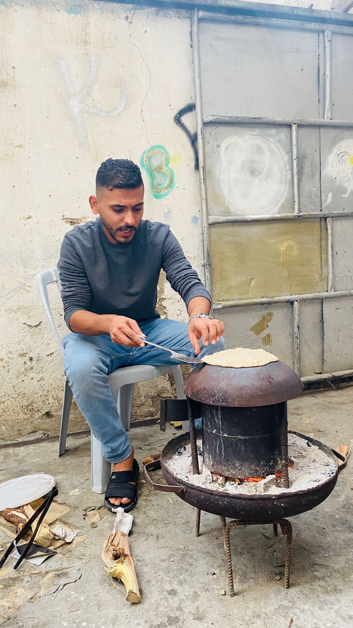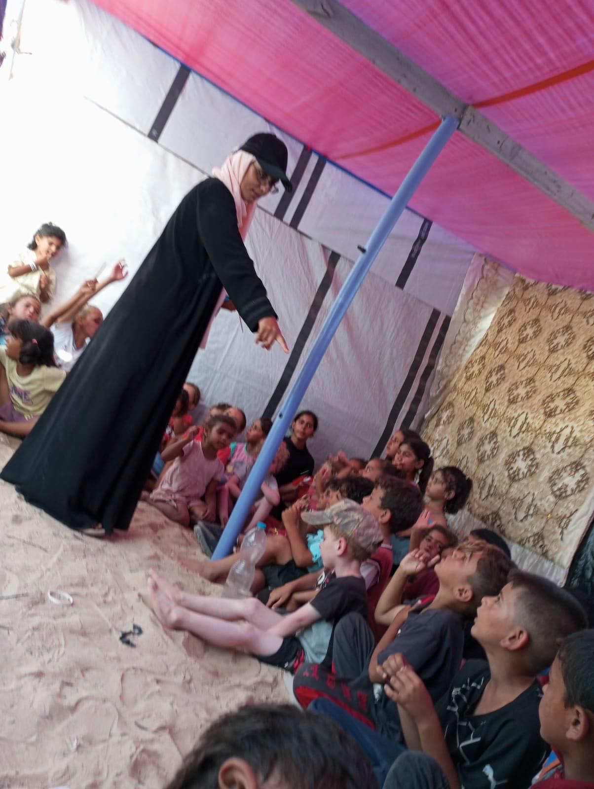His sister Ebtihal in Gaza is teaching kids in tents currently: