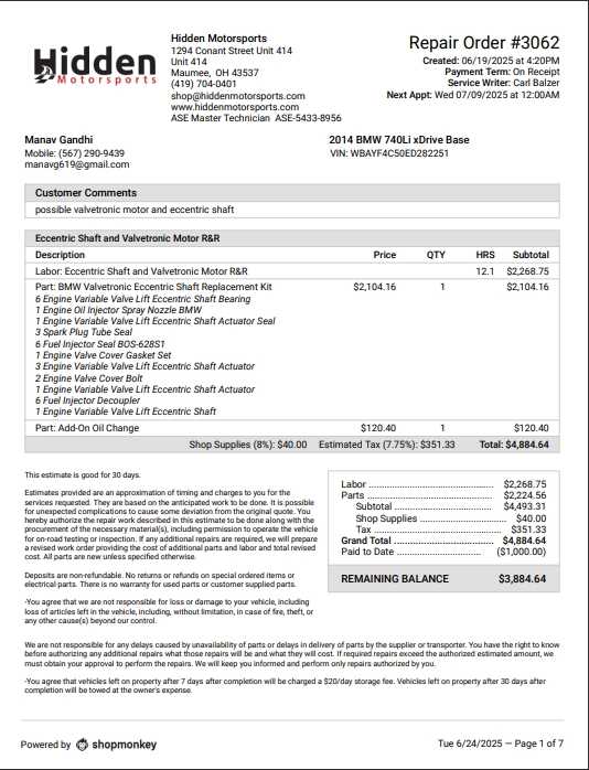 Hello, My name is Manav I am from University of Toledo. I am student studying at undergraduate level in university of Toledo. About a year ago I made a decision to purchase a BMW thinking that I can repair it myself and would not cost much to do it. everything was going till about a year but after that it started giving me all kinds of problems and my money started flowing down the drain. I have already spent a lot of money to a point that I have to ask people for help. I have paid most of the repairs but there is this amount mentioned that I can't keep up I am still a student, and I don't have money to buy another car and I don't have any family here therefore i request you to please help me out as much as you can I will attach all the bills that will be generated.