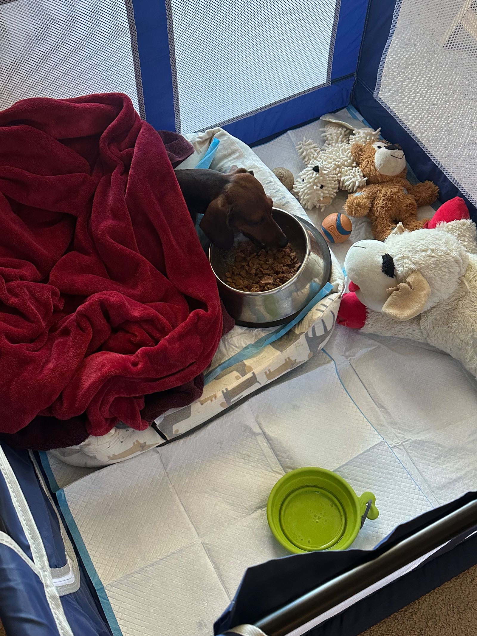 Like I previously stated, starting next week, we will begin steroids and start acupuncture and massage therapy to help relieve the swelling and stiffness and, hopefully, keep Willie on track to start using his bladder on his own again. For now, he is comfortable, in no pain, eating his regular dog food, and hanging out in a new pet pen I bought for him while I am away. Thank you again for all the donations everyone has given. The money raised will go toward his acupuncture, red light therapy, massages,and any other treatments he needs to get better.