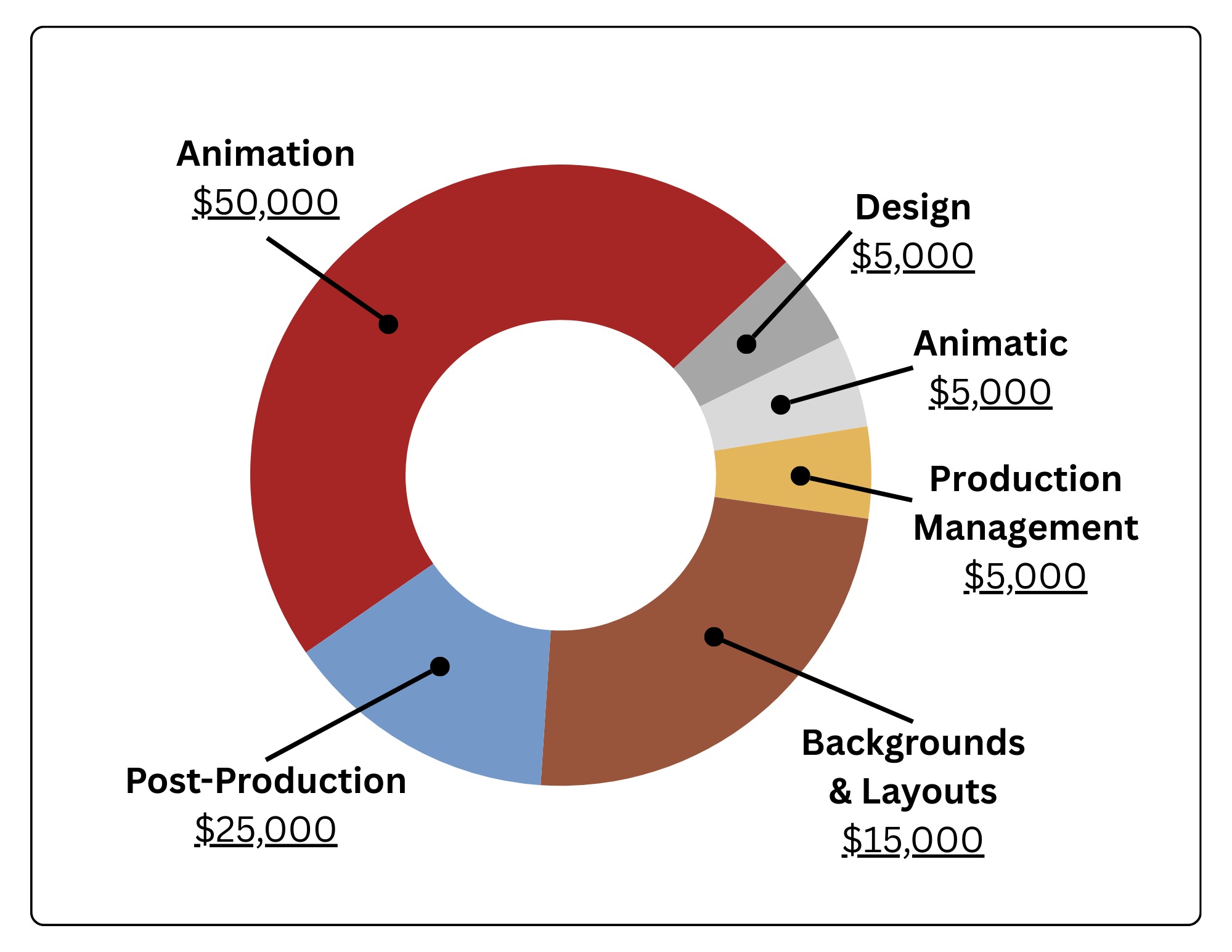 This is the breakdown of how much funding we need for each step of the animation process.