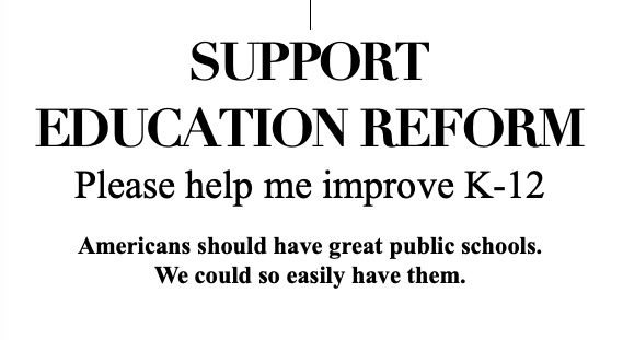 Saving K-12 is a 190-page book that explores all the basic problems. A good, lively read about serious topics, it’s an excellent present for your smart friends. Amazon has 20+ reviews.