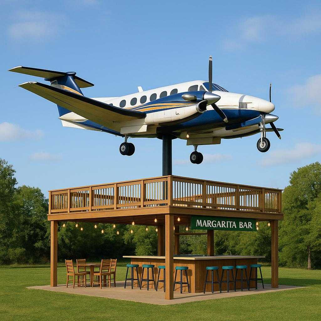 We’re building something totally unforgettable in North Central Arkansas — a real King Air aircraft mounted on a pole, soaring above a custom-built deck and margarita bar right below! Located just 1/4 mile from a major vacation highway, this will become the roadside destination for travelers and locals alike.