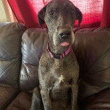 It is thought she is about 3 years old. She is very active and loving. She knows sit, shake, lay down. She has been a PERFECT fit to my mourning heart.