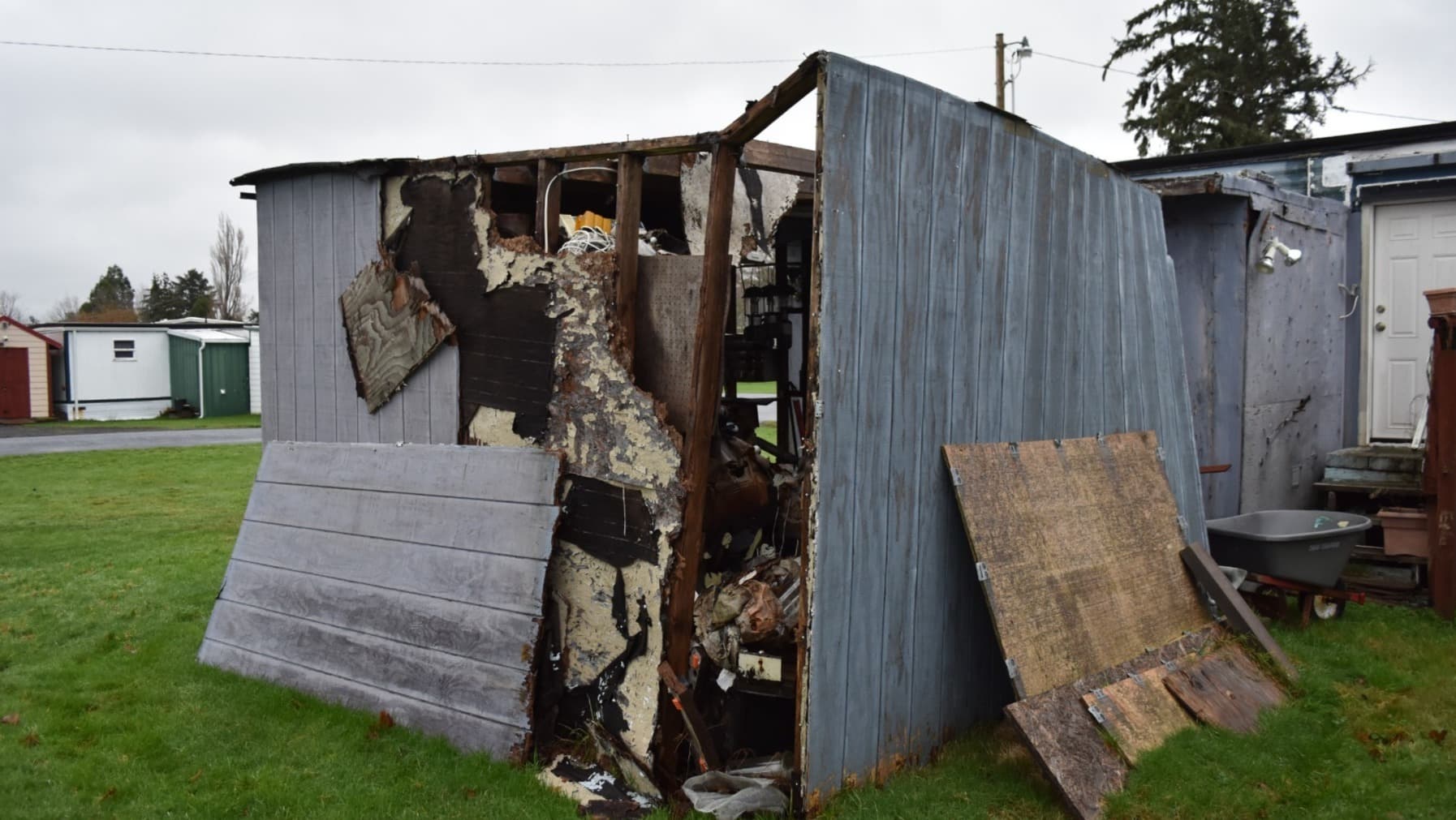 The mobile home park in which he lives had told him he has to fix or remove a shed that is falling down, due to storm damage and disrepair.