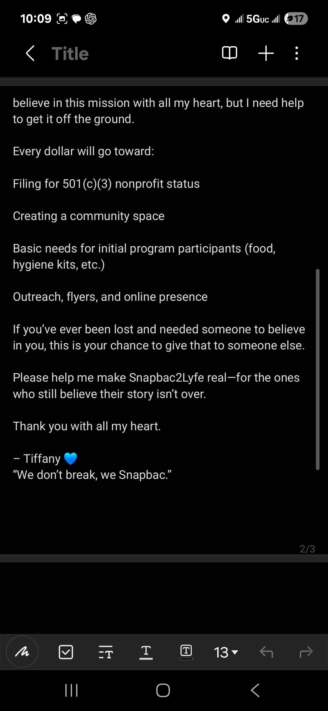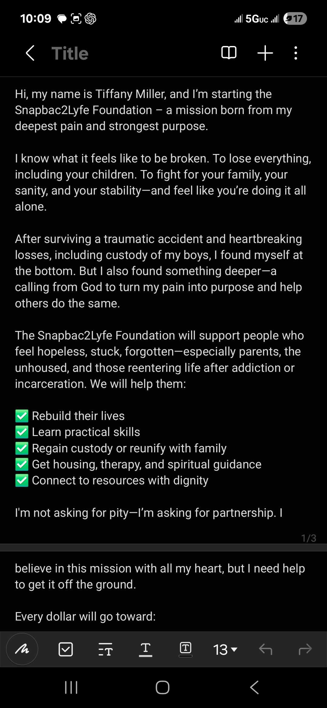 Show your support to Tiffany Miller by donating to this fundraiser benefiting Snapback Foundation