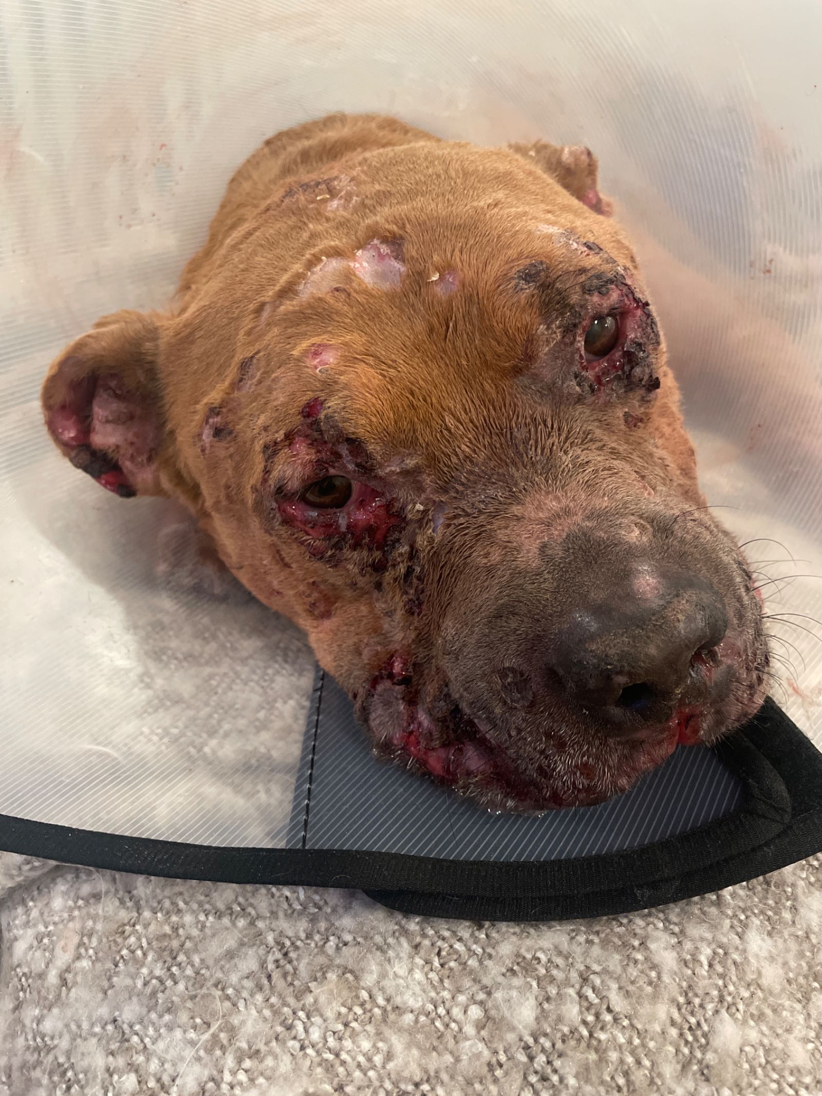 7/30/22: you can see his hair has started to grow back and he is getting better.