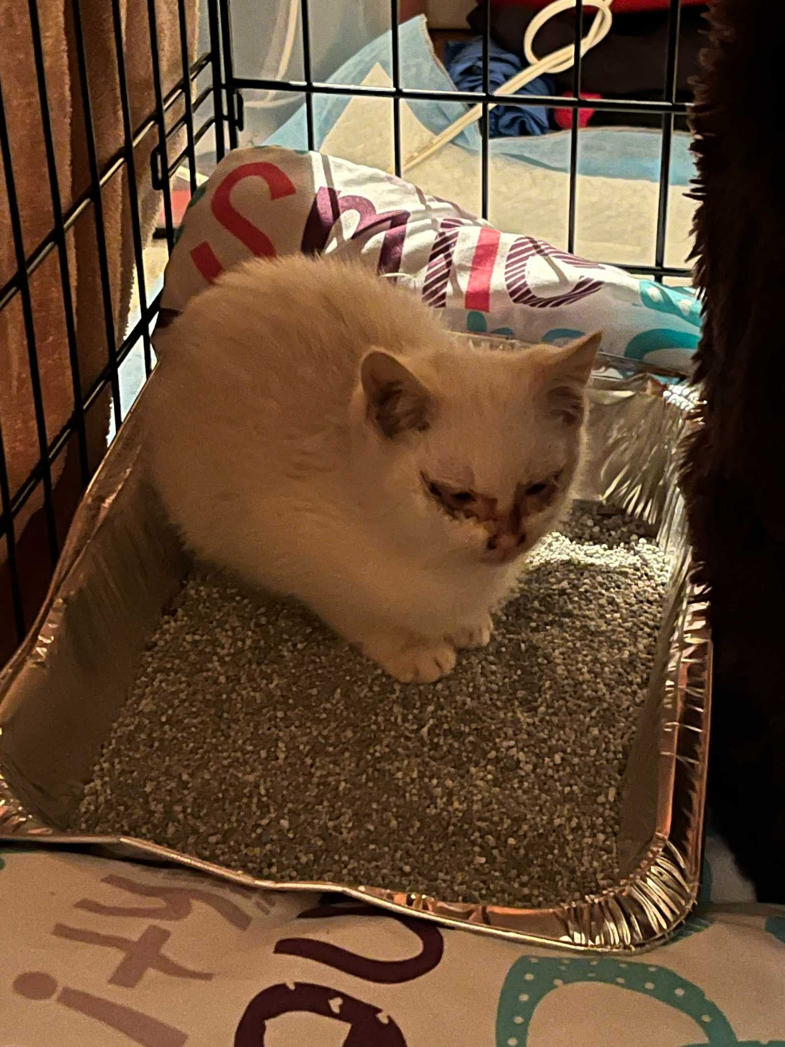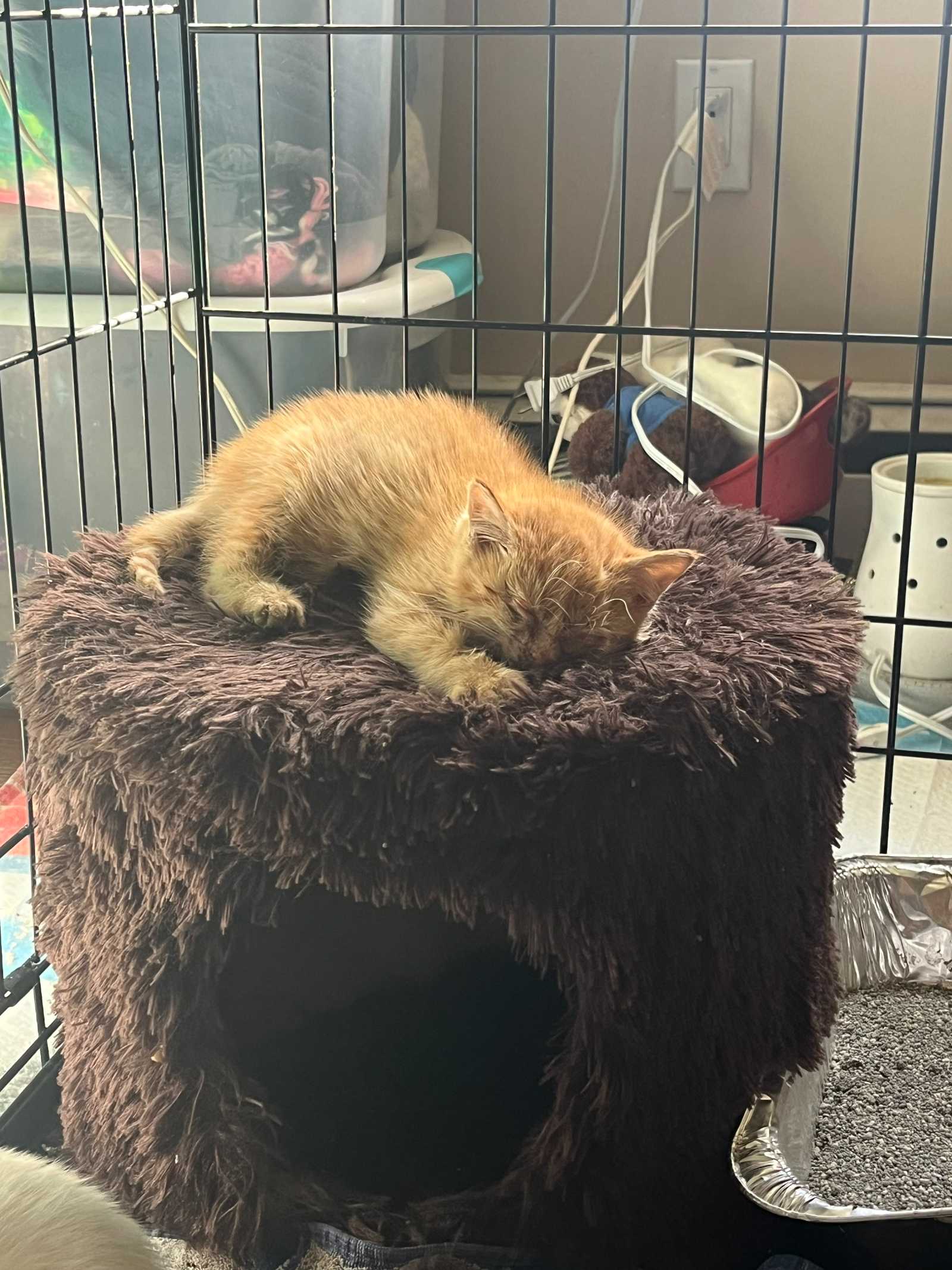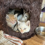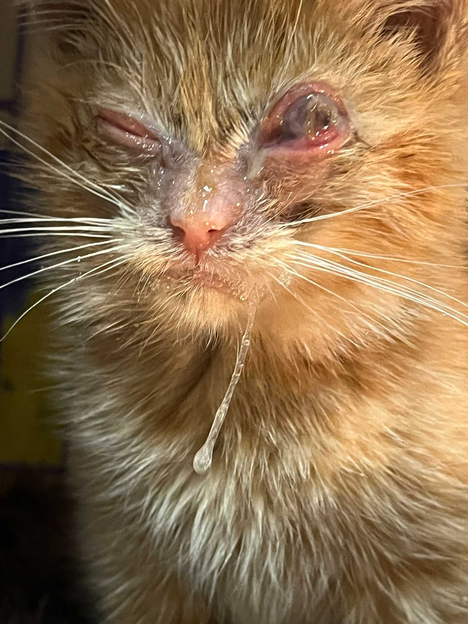 Two very sick kittens were trapped and saved from a feral colony on 11/12/24. Within the next week, their 2 healthier siblings were trapped as well. Pumpkin (orange kitten) is blind and is going to need her eyeball removed once she weighs enough to have surgery. She is the happiest little girl you will ever meet and purrs away as soon I pick her up.