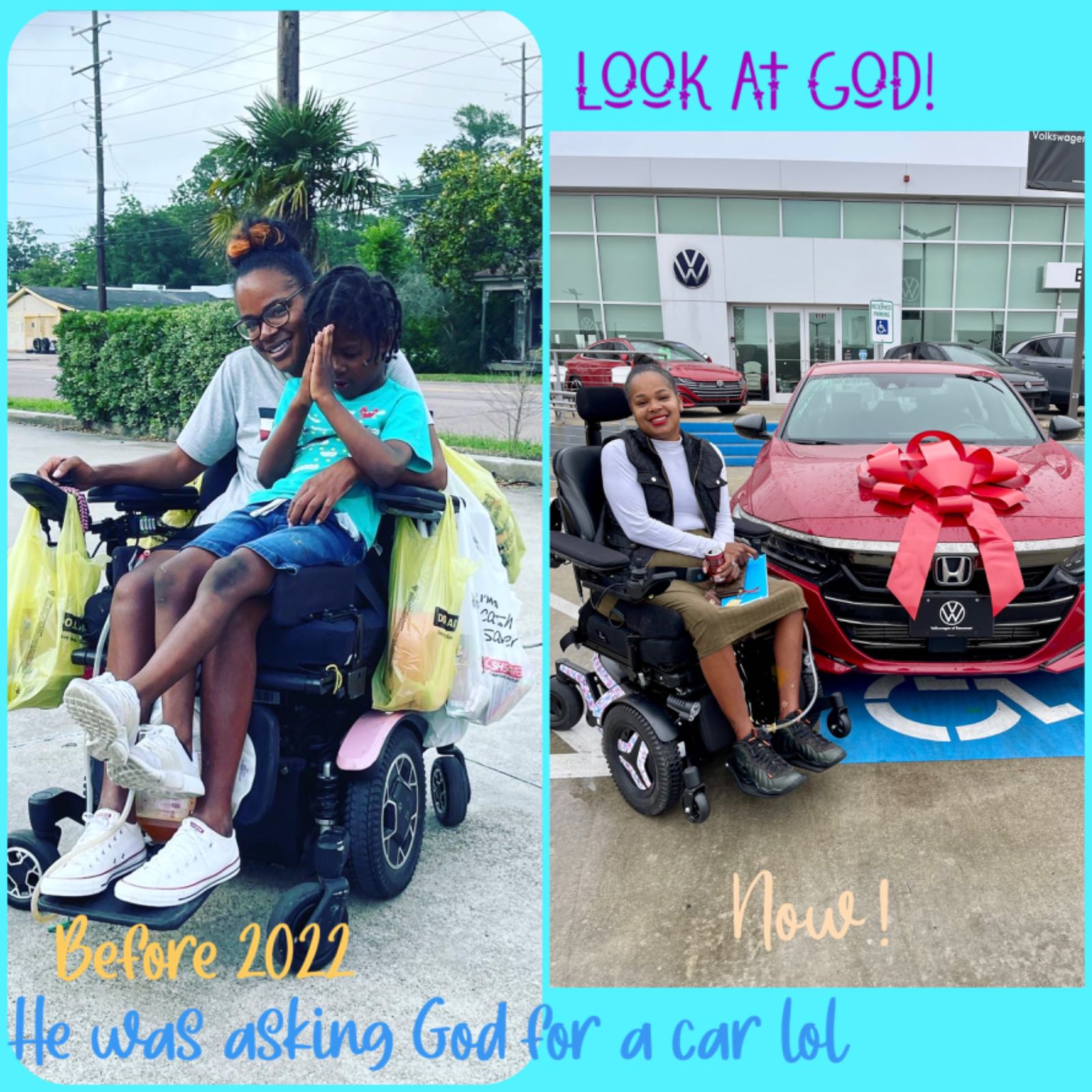 In August of 2019 I was brutally stabbed eight times by then my two year old twins father who suffered from drug abuse. Left for dead I began praying the guy leaves and that God wouldn't take me in front of my boys. Finally gone, my sister ran to help me while both of us realizing I was paralyzed seeing that I couldn't be moved. On the front porch for 15 minutes I continued praying while waiting for her to go wake up any neighbor to call police (Guy took phones with him, not to mention it was almost 3am). Still praying that God would spare me in front of my kids but knowing if it was His will I was ok with it. I survived that night and have been a quadriplegic ever since. That didn't stop me though I got out the ICU after 2mths and asked the Doctor "what's next?" I was transported to Nexus Specialty in The Woodlands where I stayed 3mths before being released to my home and immediately I went back to college to finish what I started. At the same time fighting spasticity before getting a Baclofin Pump to relax my muscles enough to even be able to receive therapy. Fighting to get approved for any type of therapy I was continually denied by Medicaid until March of 2021 I started receiving therapy through TiRR Memorial Hermann in Houston, paid for by Comprehensive Rehabilitation Services. While going through therapy my mother was upset with me for being paralyzed and having to need her help. She gave me a negative attitude when getting me dress to attend therapy, it broke my spirit but yet made me stronger and more determined to become independent. Graduating my 1st phase of therapy in December of "21 I took a break to focus on my last semester at Lamar to graduate in Spring of 2022. Finally I finished with my AAS in Occupational Safety and Health, this accomplishment was made to show my boys that there's no excuse as to why you can't do anything! Today I completed my first class of driving school with Strowmatt Rehabilitation Services, passing the course I completed my rode test on May 27th and was issued a driving license. I'll will need a van to began driving and also to become more independent. This van will be converted by a funding source called Victims of Crime but I have to have a purchased van in order for conversion. Contributing to help me will not only help me but also my beautiful boys being that I am a single mother. For the last 2yrs I have literally carried them on my lap either traveling by power chair or city bus and driving my wheelchair to Lamar campus to complete school up to three times a week with two being night classes. I even drove it to my graduation ceremony 😂 but hey I had to do what I had to do to get things done and will continue to do so. I wanted to share my story with people to find help so that I could begin working to provide a stable home for my twin boys and myself. At the moment I am a student at Lamar University studying Industrial Technology. Also IVe begun my second phase of therapy to try and stand and walk. If you're not able to help a simple payer for strength will do!! God bless you ALL!! I love you all!!