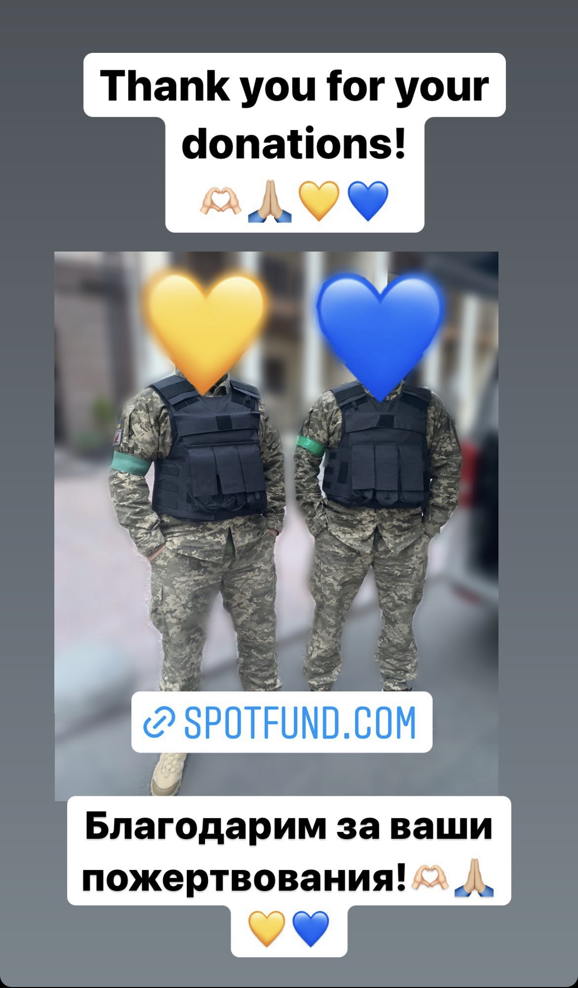 We are raising money for the Ukrainian Territorial Defense people. There is so much going on and a lack of everything, and not all of them are receiving any help to be able to stay warm, and protective.