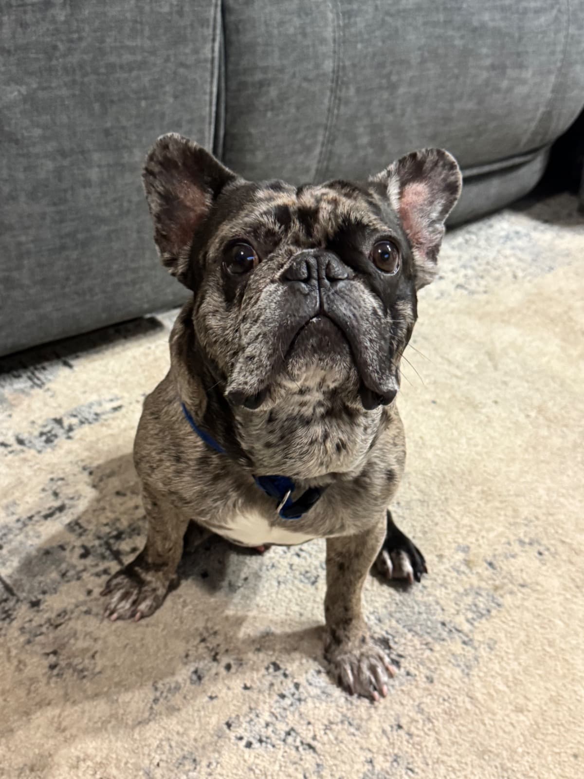 His name is Athlete. He is a 3-year-old male French Bulldog. Athlete is friendly and affectionate, and he loves to run and play. Have you ever heard of a dog giving hugs? He gives the best ones!