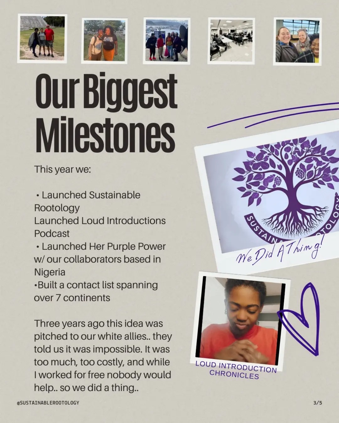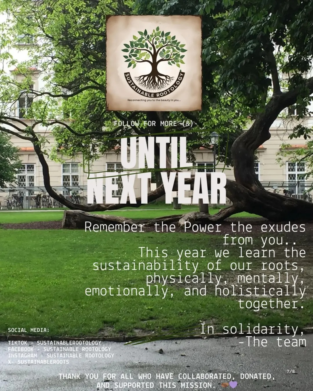 We will together create a world that allows safety, community, and paradigm shifts that allow us to transform and grow strong together in sustainable ways. This movement is called Sustainable Rootology. It began with a Sojourn that involved students, clergy, professors, elders, and the outcast. Together we break barriers and stereotypes in real-time listening, learning, loving, collaborating, and strategizing as one. We are the change we want to see. We must be. Our youth are rising, and we need our elders' wisdom to get through this. May we partner for transformation and unity?Β