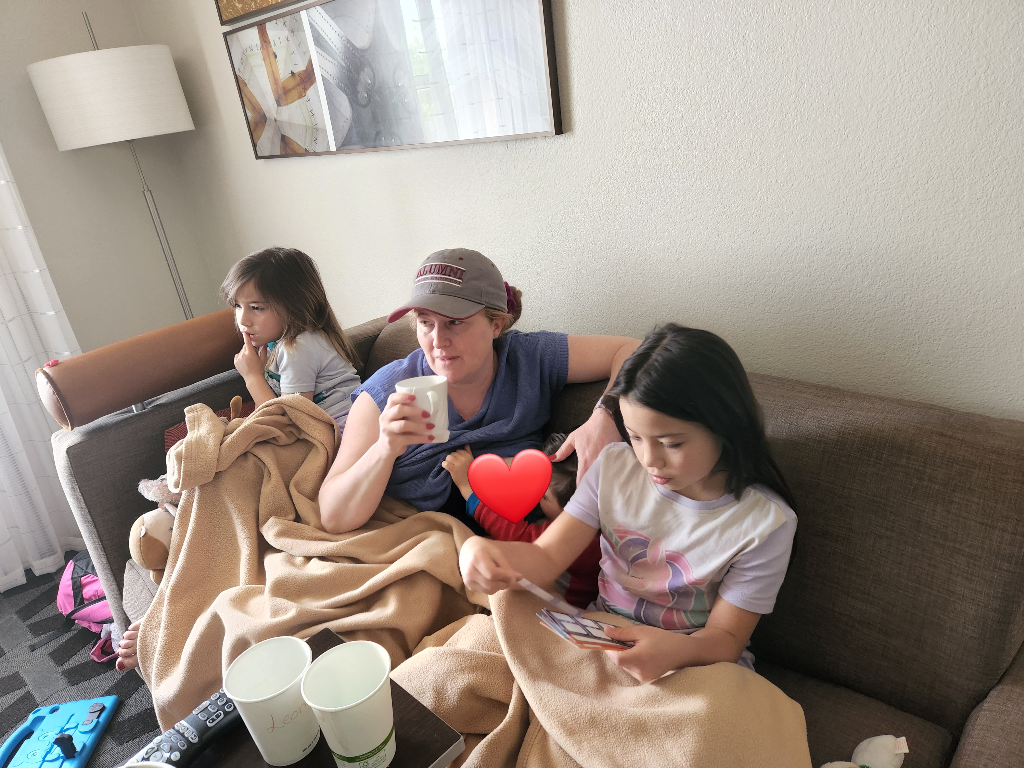 Thankful to return to my family with medicine, we were also told the hotel was sold out and we had to move again. Now to our current situation; that we were able to secure 4 nights at towneplace suites in Tempe so that we have a freezer for Popsicles as that's how I've been able to keep kiddos hydrated. Having a small kitchen and a separate space for the 17 yr old has been very helpful too. If you've read this far then I greatly appreciate your patience and interest. Absolutely anything helps. Thank you ❤️