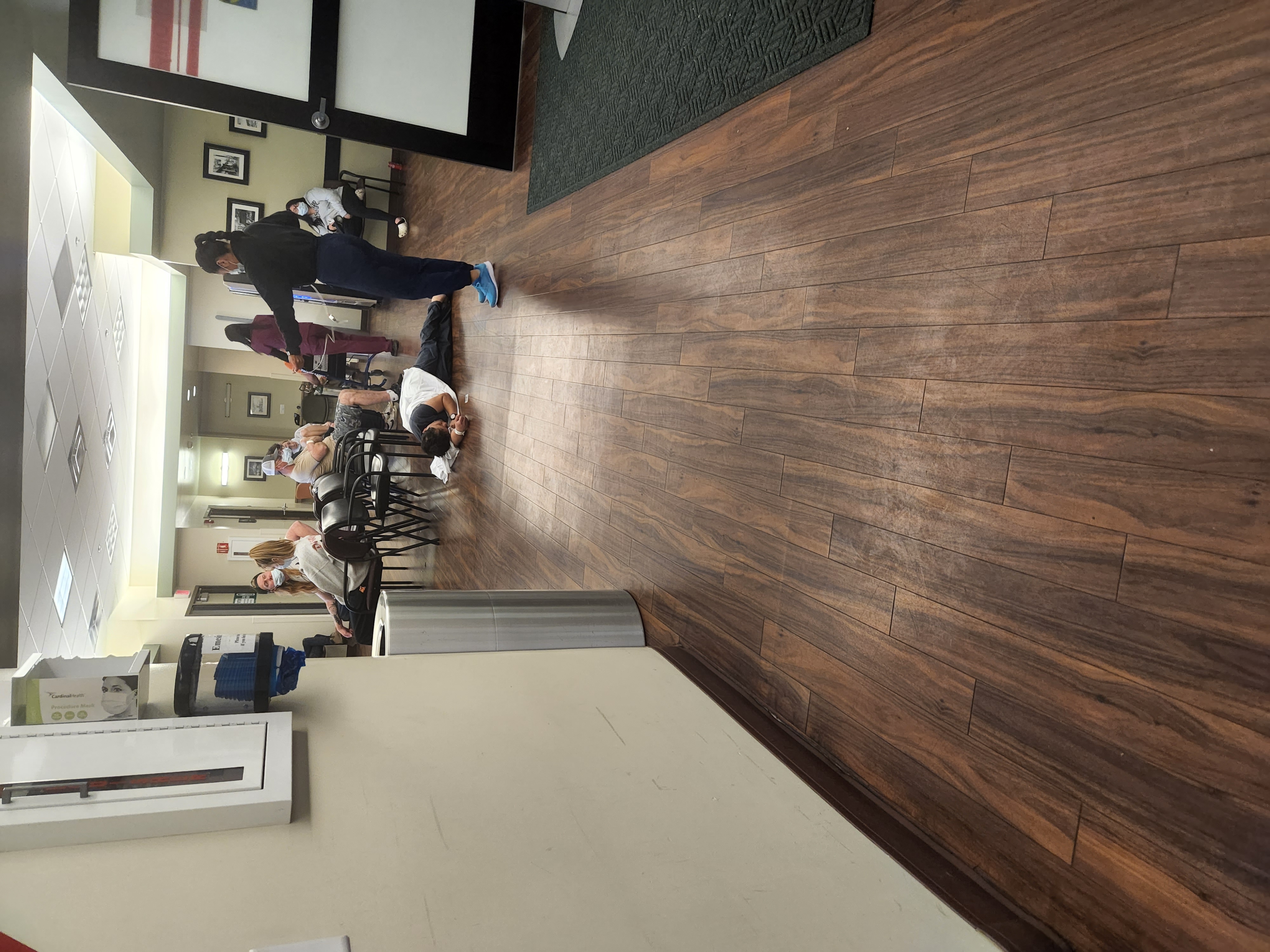 I hopped in the car to follow the ambulance with my 4 kids in the back seat. Once I arrived I parked the van and brought my 4& 9 yr old kids with me to go check on my husband. I walked into Flagstaff Medical Center to see my husband, who was brought in on a stretcher from an ambulance, laying flat out on the floor in the ER waiting room. The 3 of us rushed over to check on him. We took notice of how the room was filled with sickly people and I called my 17 yr old to take the 4 & 9 yr old back to the Van. As I was sending my kids off to the car, I checked my husband's breathing and he was barely communicating with me. I went to the front desk to tell them he isn't responding to me and has asthma! A nurse slowly pushed the vitals machine out to him and checked him. His oxygen was in 89 so the nurse and I picked him off the floor to sit in a recliner near the nurses station.