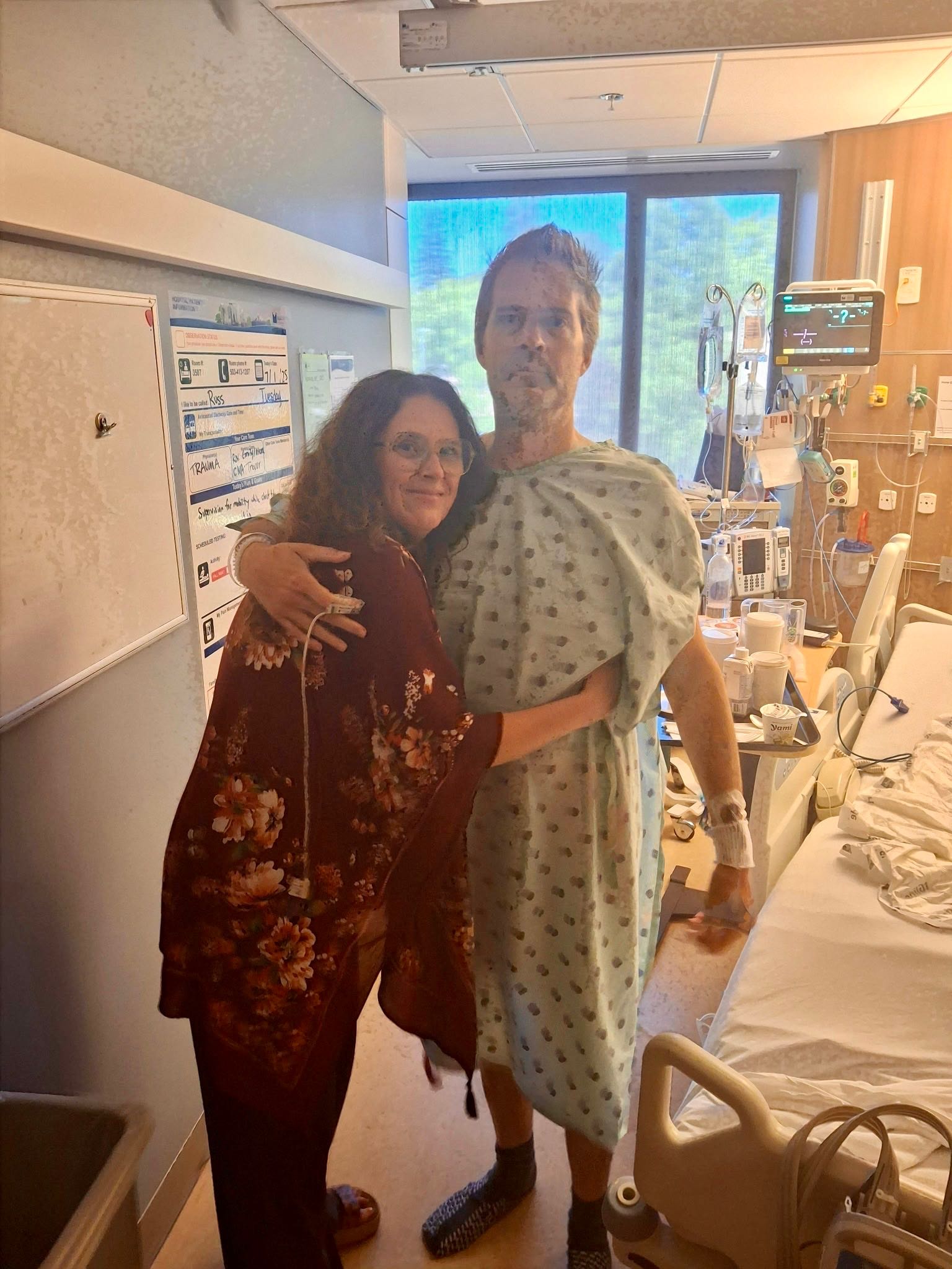 On the morning of Thursday June 26th my brother Rus was the victim of a random stabbing in his neighborhood in Portland, OR. After a brief interaction at the local convenience store, the assailant approached him from behind and stabbed him in the side as he took a morning stroll home from the local 7-11. Thankfully he was able to make it back to the store and got someone there to call an ambulance. He was quickly taken to the hospital where he was treated for life threatening injuries.