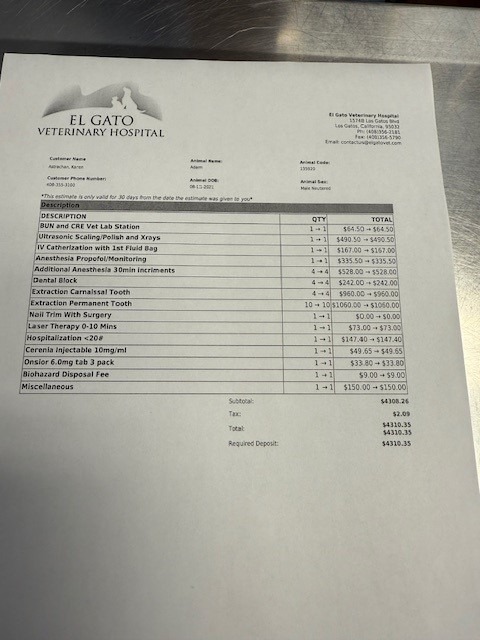 Below is the vet estimate.