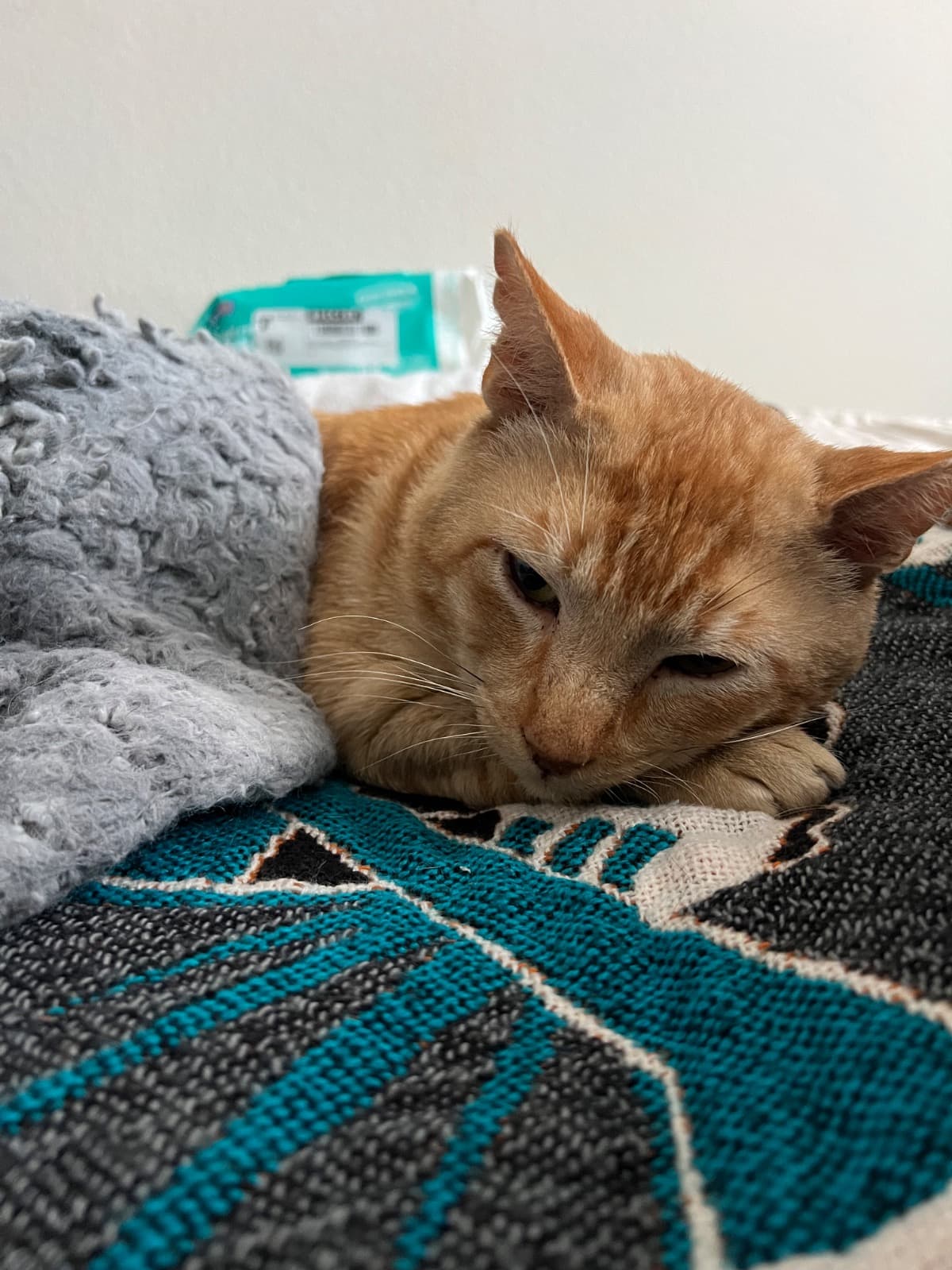 Adam has been through 5 vet visits since he came to me late May with 3 different clinics. Even after the full blood panel, no one was able to tell us what is wrong with him. He would eat but would skip meals, too. His breath had an odor. He was in bed 23.5 hours a day. He only jumps down when he needs to use the litter box. Most of the time he's either be sleeping or hiding.