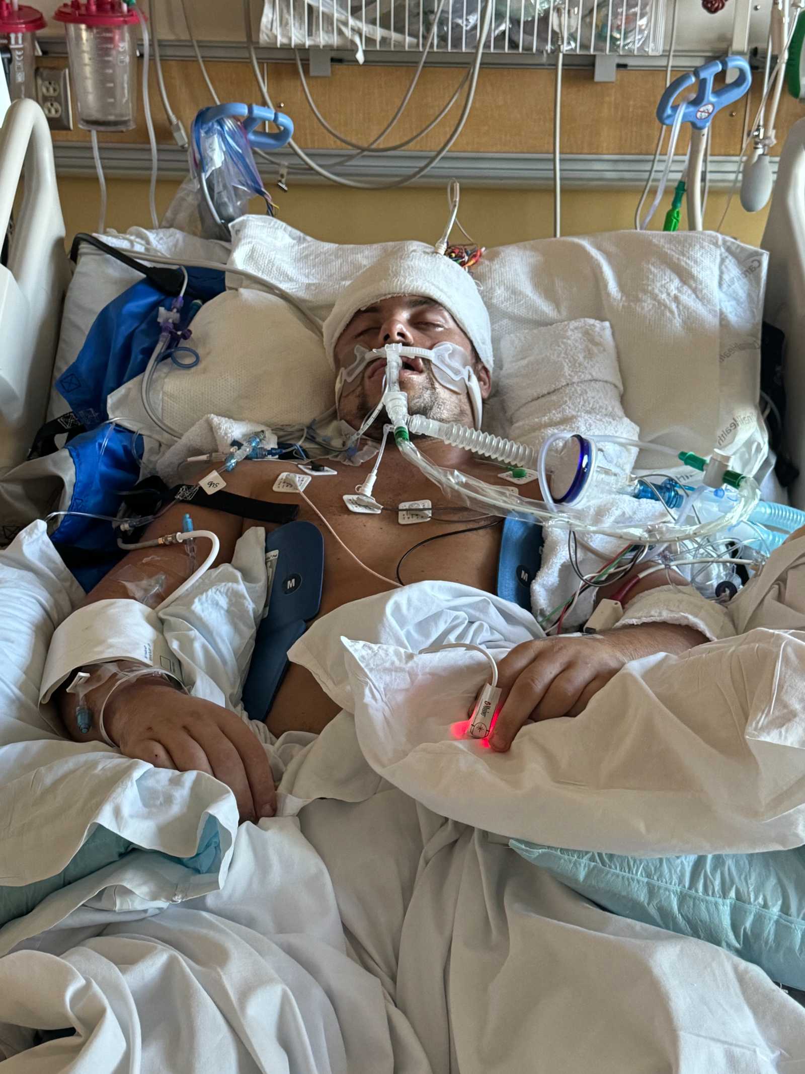 Marc is still waiting for an MRI to determine the extent of the brain damage, which is now his team’s biggest concern. Once the pentobarbital, which induced his coma, wears off, he will be able to have the scan. His team is anticipating two MRIs this week.