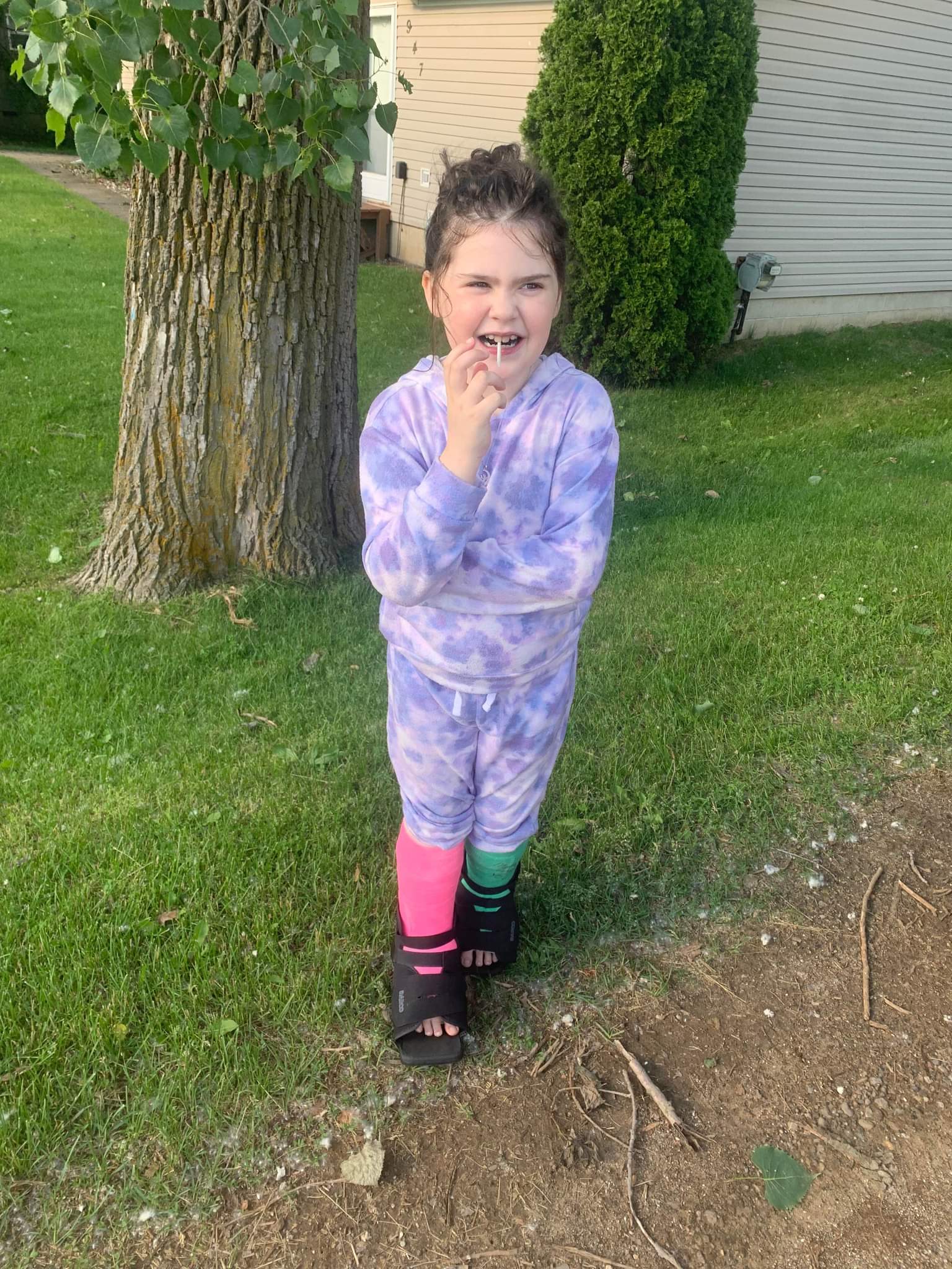 This is Skylee Ana, she is 7 years old, full of character, and always has some words of wisdom for her older siblings. Skylee just recently was diagnosed with Idiopathic Toe Walking. This means that she has favored walking on her toes. This wouldn't be a problem apart from the tendons in the back of her legs haven't been able to grow properly. Due to this she is @ risk for having a surgery to long gate the tendons in the backs of her legs. This surgery to elongated tenddons is extremely invasive and a traumatic experience for any child to go thru. The doctors have chosen a treatment that is less invasive and could avoid surgery. She has a cast on the leg 1 leg now and then will have both casted @ the same time after a 6 week period. These casts get changed weekly, this means we have to commute 1x a week for the next 4 months to UofM for these casting appointments. This could not have come @ a worse time with gas prices being 5$ a gallon. It's a struggle and I feel shameful that I am asking for help from complete strangers. If anyone could help me to help my daughter get to these appointments and possibly obtain physical therapy equipment to avoid surgery in the future, we will be forever grateful. We will always look for ways to pay it forward. Thank you for taking the time to even read or acknowledge. Thanxs Danielle Daschke-Wesch