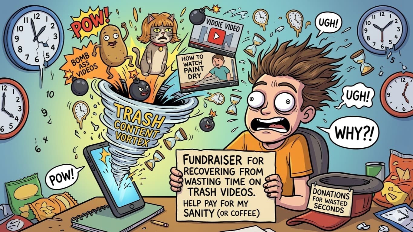 Since I’m clearly a magnet for bad content, I’m leaning into it! I’m raising funds to compensate for my lost time. Send me $1 and I will officially become your biggest fan—especially if your content is also absolute trash. 🚮 I’ve got you! 🤝🔥