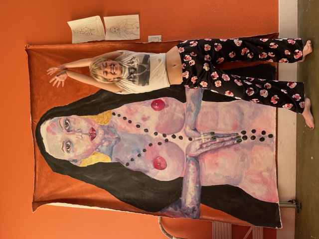 full sized originals canvas in prosses so you can see the size scale better! With very sleepy me posing for you!