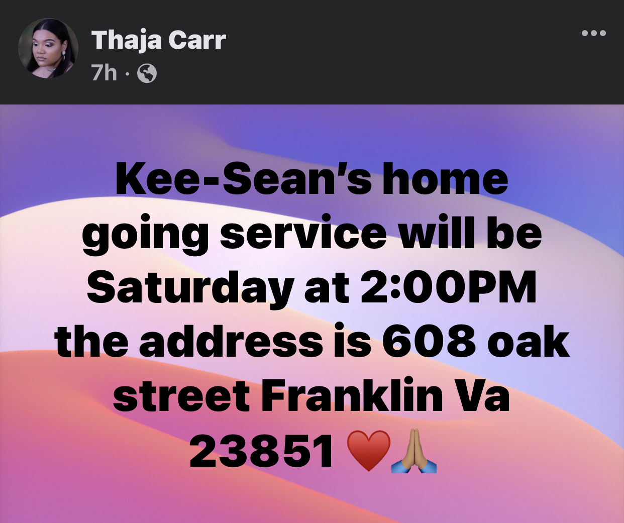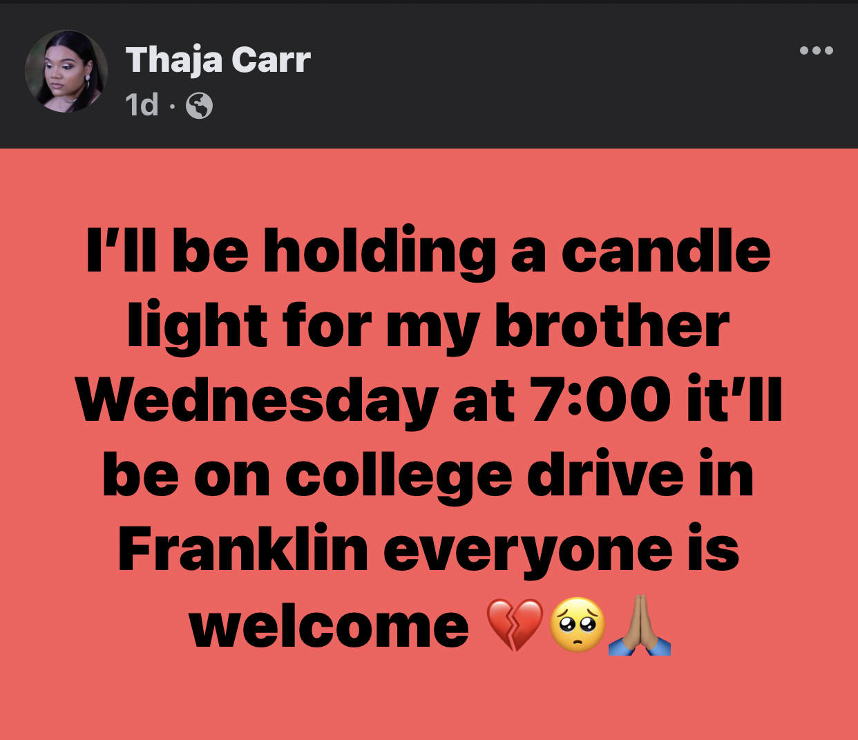 Tragically, on April 17, 2022, Thaja Carr's brother was taken away by devastating circumstances.
