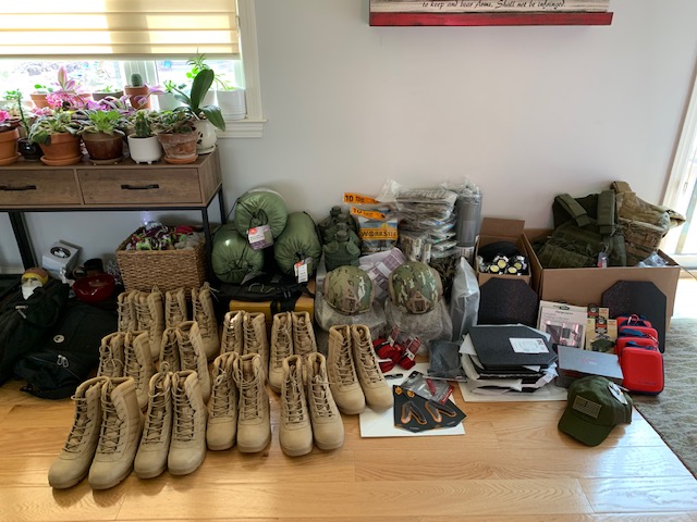 We are set to outfit at least 12 people with a full kit: boots, elbow/knee pads, gloves, body armor and tactical vest, helmet, eye/ear protection, gas mask, IFAK (individual first aid kit) and I'm sure I'm forgetting something... We couldn't afford night vision for each kit but we have several sets! (it comes out to just over $1100 per person, not including NVGs) We also have 2 drones that are highly requested!