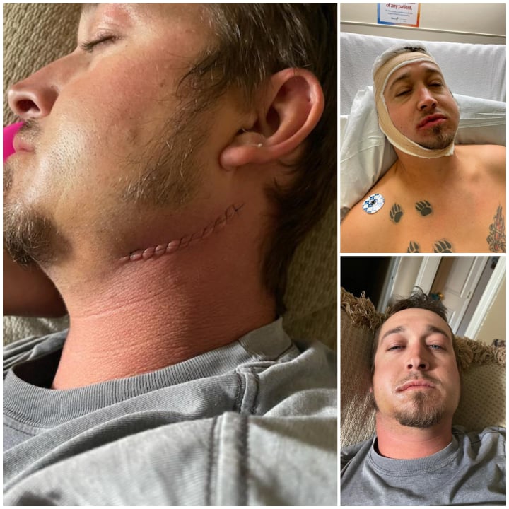 On that Friday September 24th, Brad and his employees went out for their last night to celebrate their big achievement of completing the zipline. However, things certainly did not go as planned. Saturday morning Tinia received a call that Brad was in the hospital. As it turns out that night Brad had been assaulted and his jaw was very badly broken. At the time no one knew the exact chain of events that led up to these injuries. Since Brad was states away from home Tinia had to spend many hours filled with worry while she tried to come up with the best plan for Brad to get him the help he needed. They were disheartened to find out the doctor in Wyoming refused to do the surgery. Due to the circumstances, after all of the phone calls, frustration and tears the decision was made to fly him home. Brad ended up waiting a total of 4 days to receive the necessary surgery. On Sunday, in the middle of the night Tinia rushed Brad to the hospital in excruciating pain. Finally on Tuesday, September 28th he was able to undergo surgery. The surgery was expected to last approximately one hour but turned out to be a 4 hour extensive surgery. Brad is now on a lengthy road to recovery.