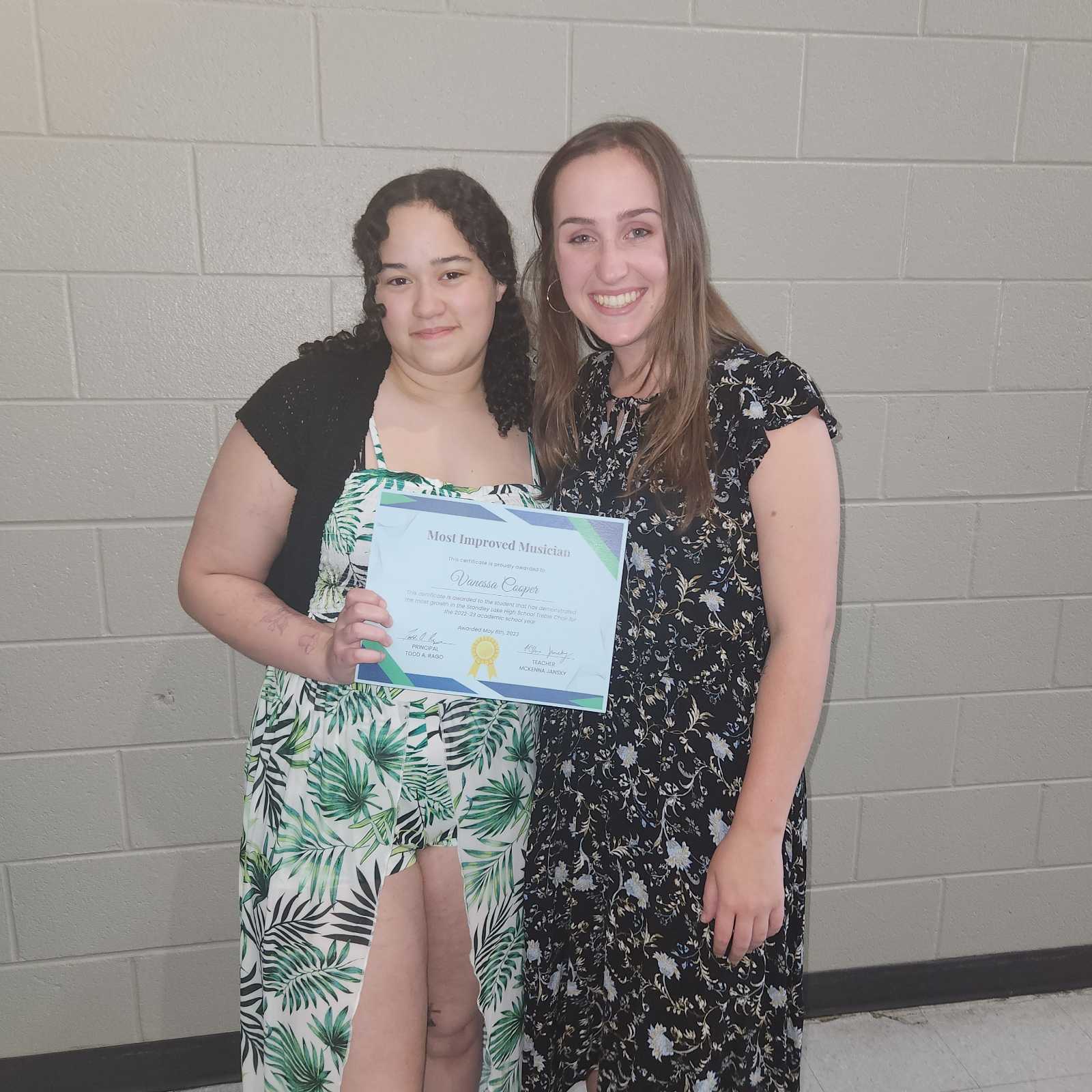 Last year, She joined SLHS choir and quickly found her place. She was voted last year by her peers as " Most Improved Musician" and has been pushed recently by her teacher to audition for All State Choir.