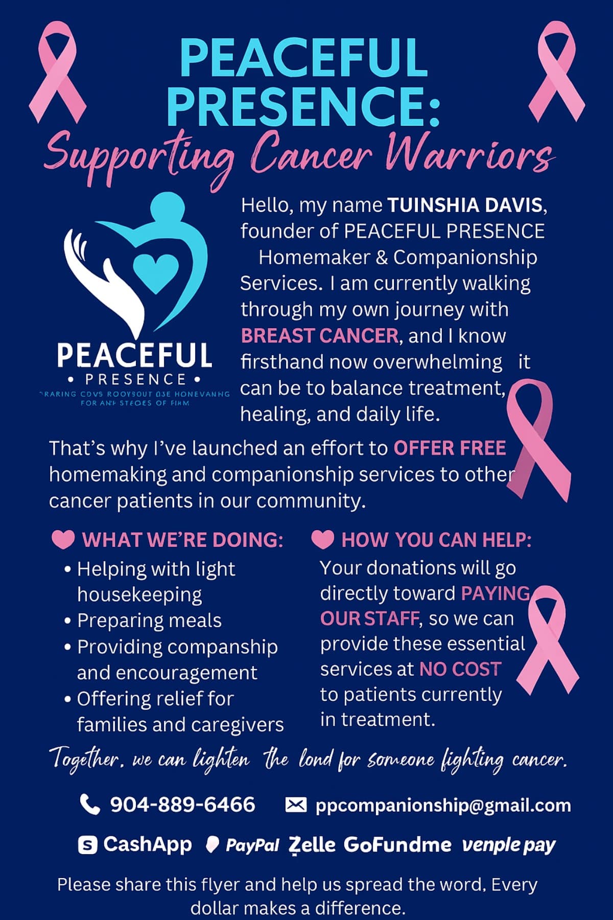 That’s why I’ve launched an effort to offer FREE homemaking and companionship services to other cancer patients in our community.
