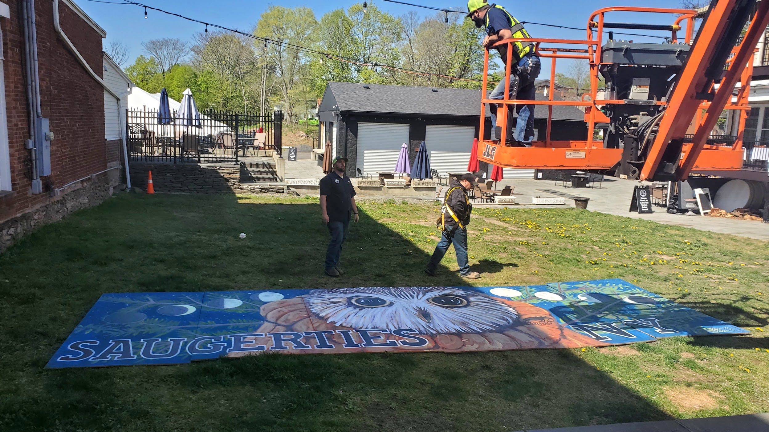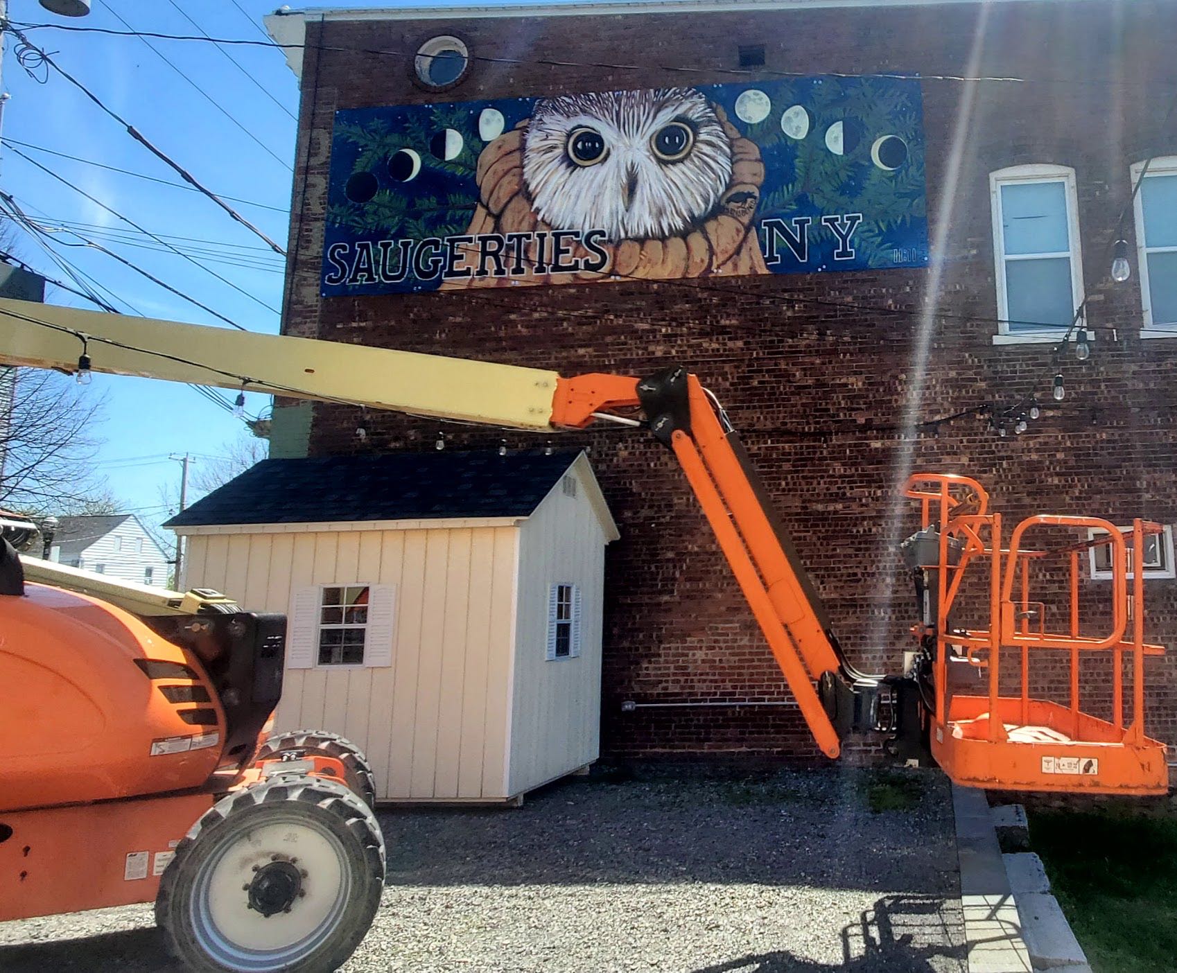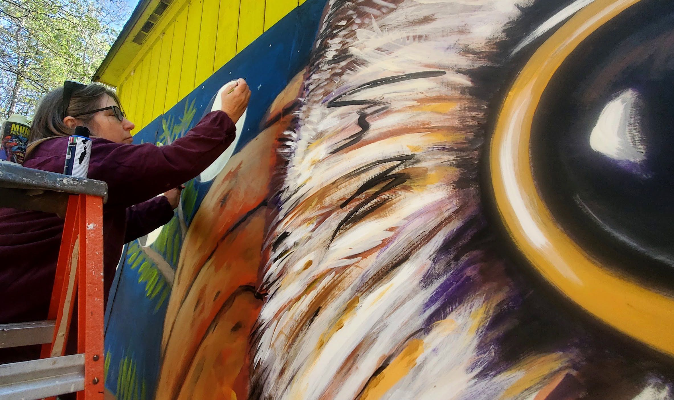 I've received permission from the building owners and the Village of Saugerties to paint a new mural in this location and the image of Rocky the owl kept popping into my mind. Rocky was the owl found in the Christmas tree last year at Rockefeller Center...the tree orginated in Oneonta and after his discovery, Rocky was returned to Saugerties for rehabilitation and release (https://ravensbeard.org/pages/rockefeller-the-owl-1)