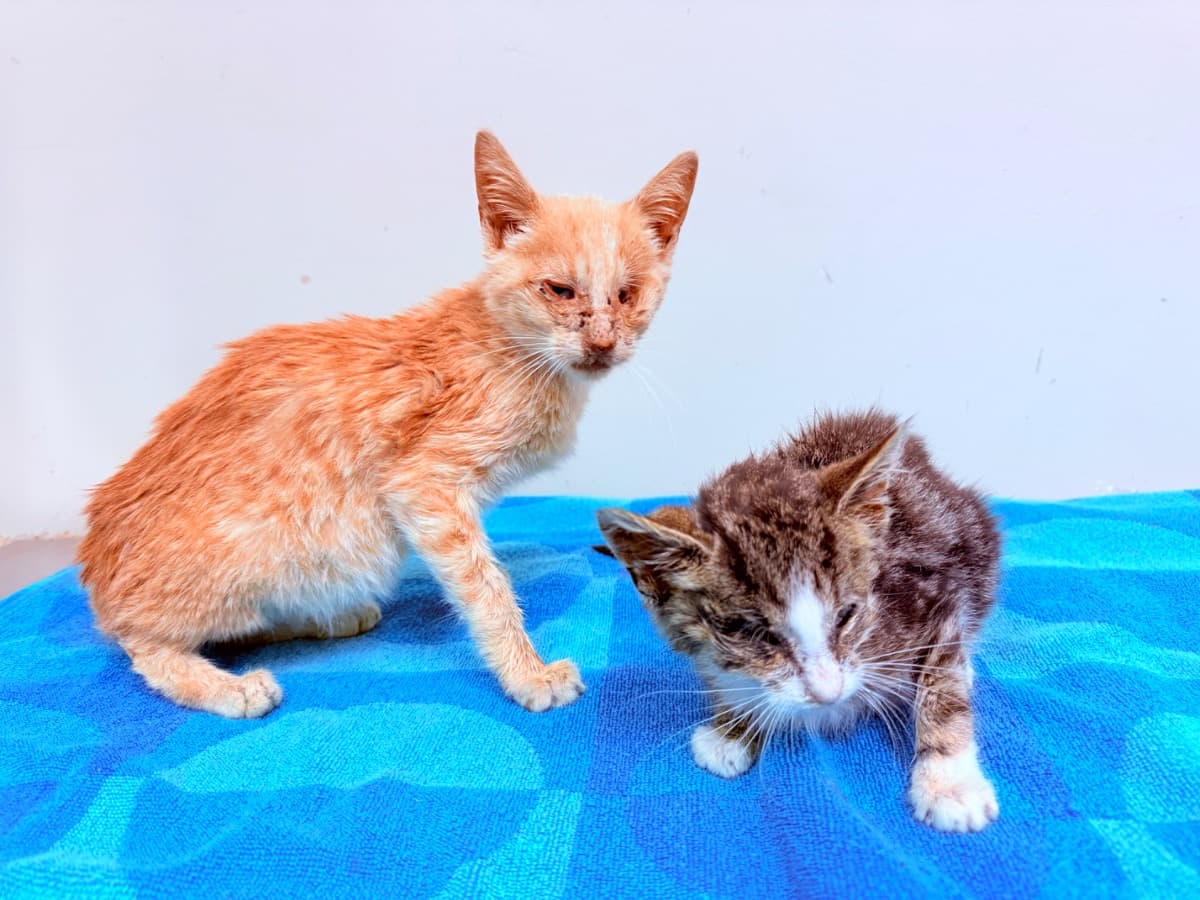 Gordita and Kenshi are two blind brothers in need of eye enucleations, antibiotics, deworming, and intravenous fluids and medications due to their severe anemia, infection, malnourishment, and dehydration.