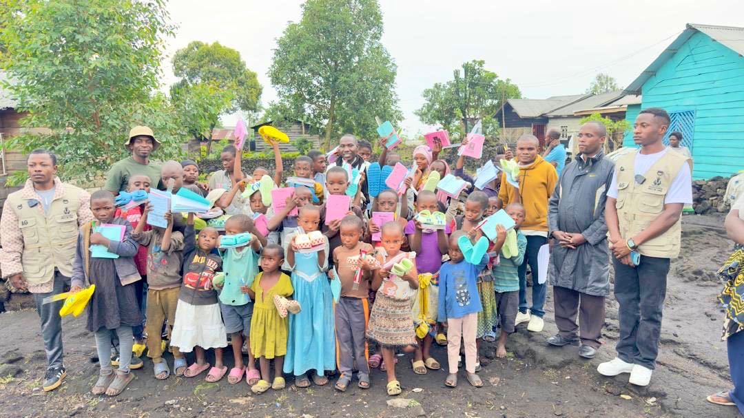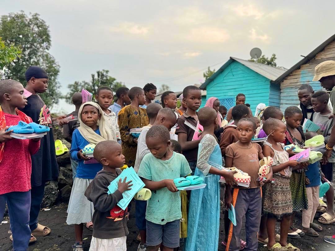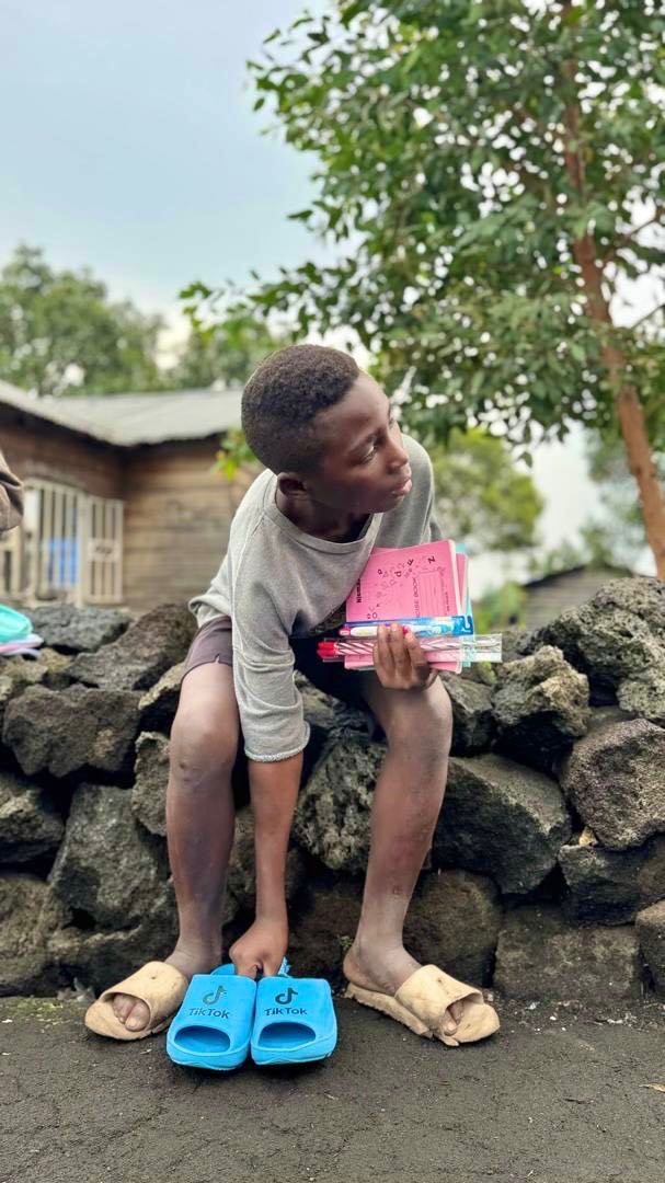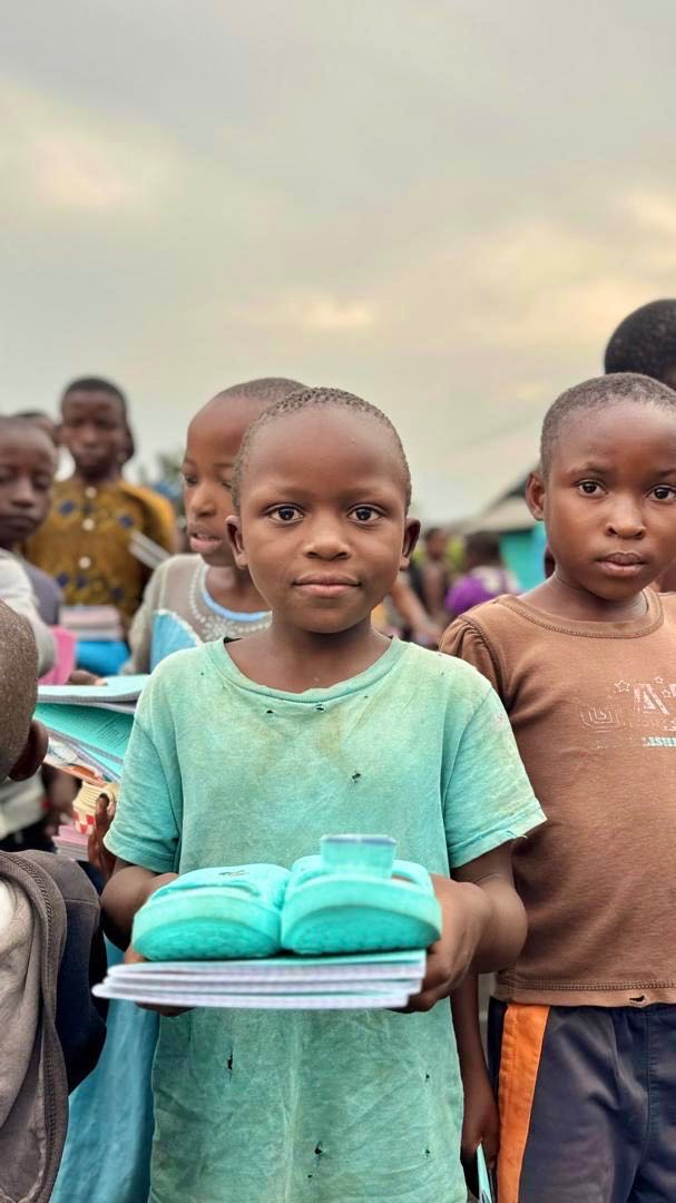 And a month before that on September 11, 2025, funds from this campaign were used to buy and bring hundreds of pairs of shoes to an orphanage called Encadrement des Enfants Orphelins et Vulnérables, which has been trying to help hundreds of kids who have lost their parents to the war. These shoes were combined with a bunch of different notebooks, pens, and toothbrushes that were sourced from other generous donors.