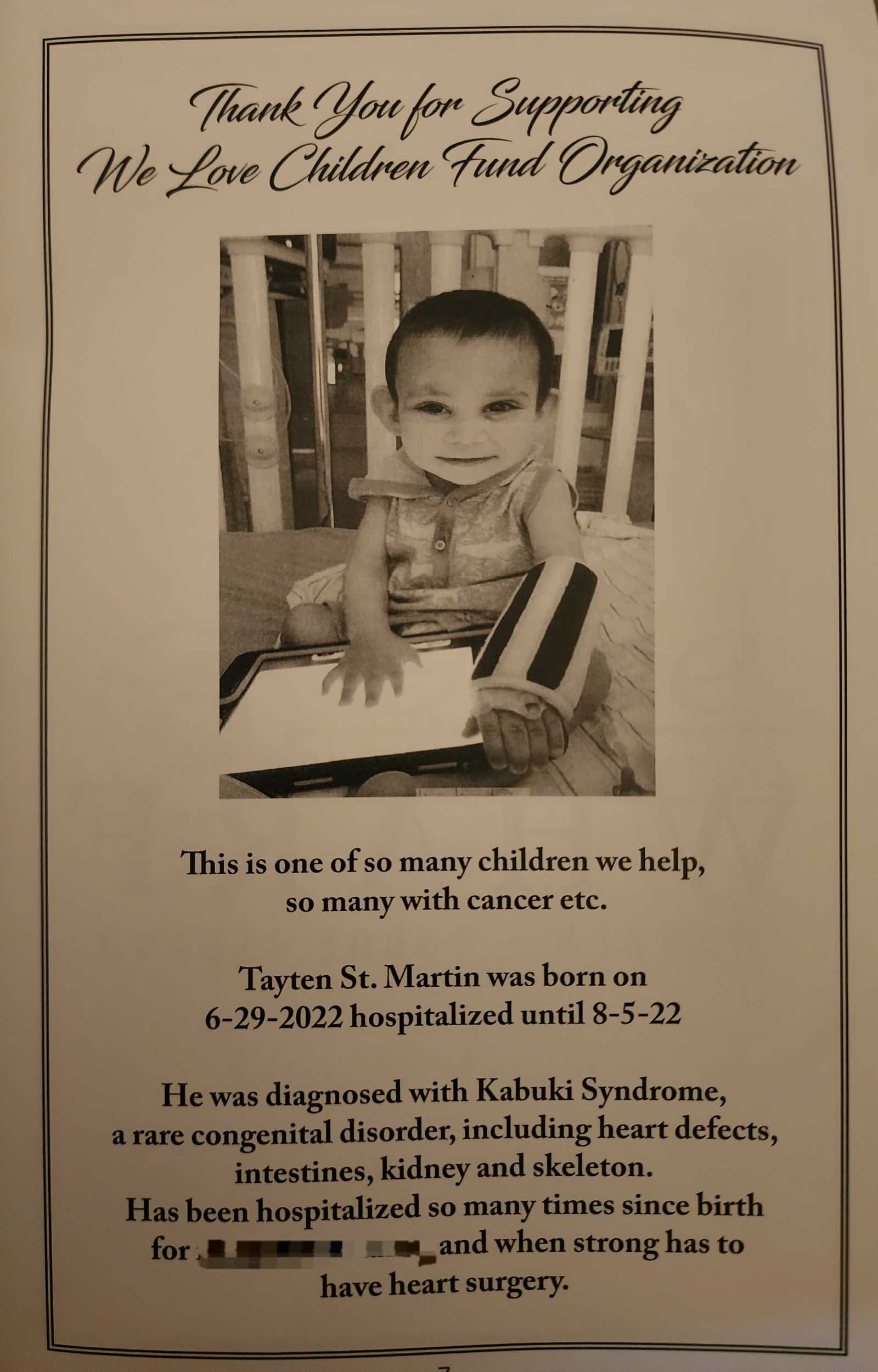 Tayten was featured in the "We ❤️ Children" brochure at their 2024 celebration.