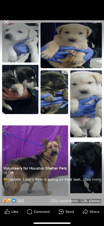 Luna and her 6 babies found themselves dumped in the high kill shelter, BARC Houston, before Christmas. They were all scheduled to be euthanized when I saw the plea from volunteers and advocates to save their lives. Legends of The Paws didn't hesitate to jump in to save them. With the help of our local transporter Judy Hausler we were able to get them to safety at Ruff Tales Boarding and Training where Oscar and his team are taking very good care of them. They will need to be vetted before being ready for adoption. We are asking for help in covering boarding, food and vetting. A very generous donor has made a donation that will cover future transportation to adopters.