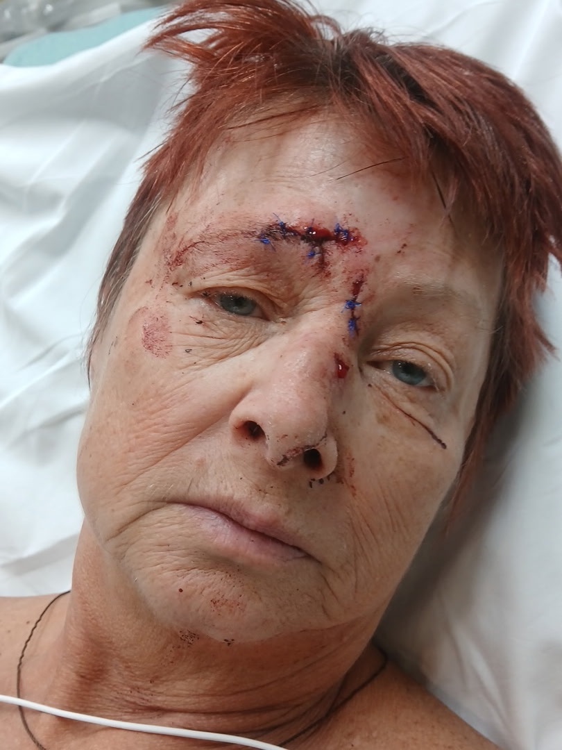 Today I lost my balance after my BP dropped upon standing and I hit our end-table. I ended up with 7 stitches above my right eye and 2 stitches on the bridge of my nose and a stery strip on the left side of my nose.