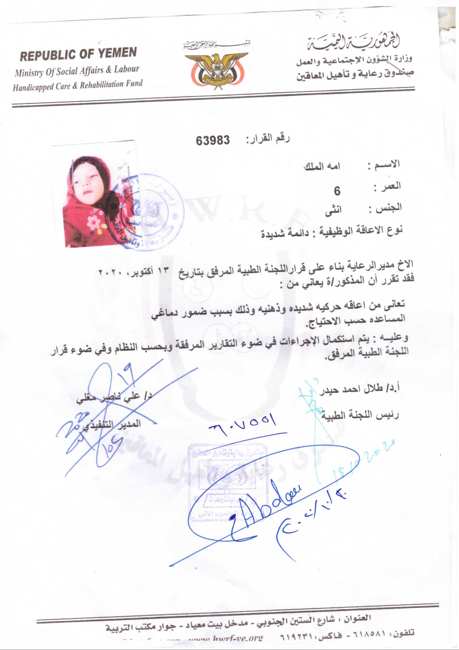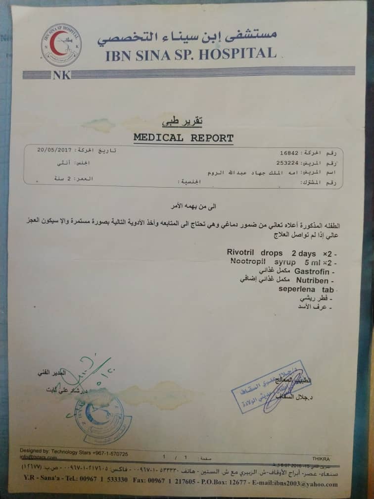 Focus) She is now in dire need of physical therapy sessions and intensive speech occupational therapy sessions and is in dire need of purchasing auxiliary tools and prosthetic devices such as cloth splints + splint 870/ and a chair