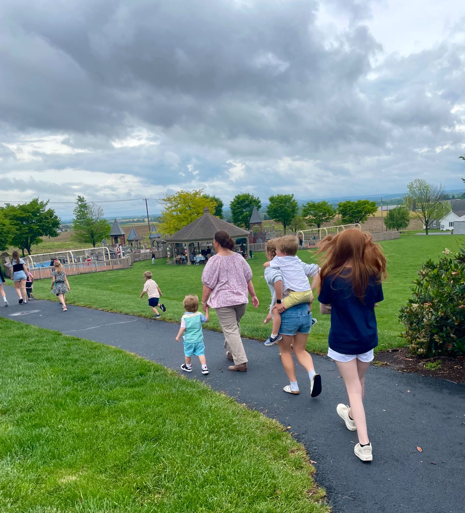 Venturing outdoors between rain💦showers to play on the playground with the kiddos