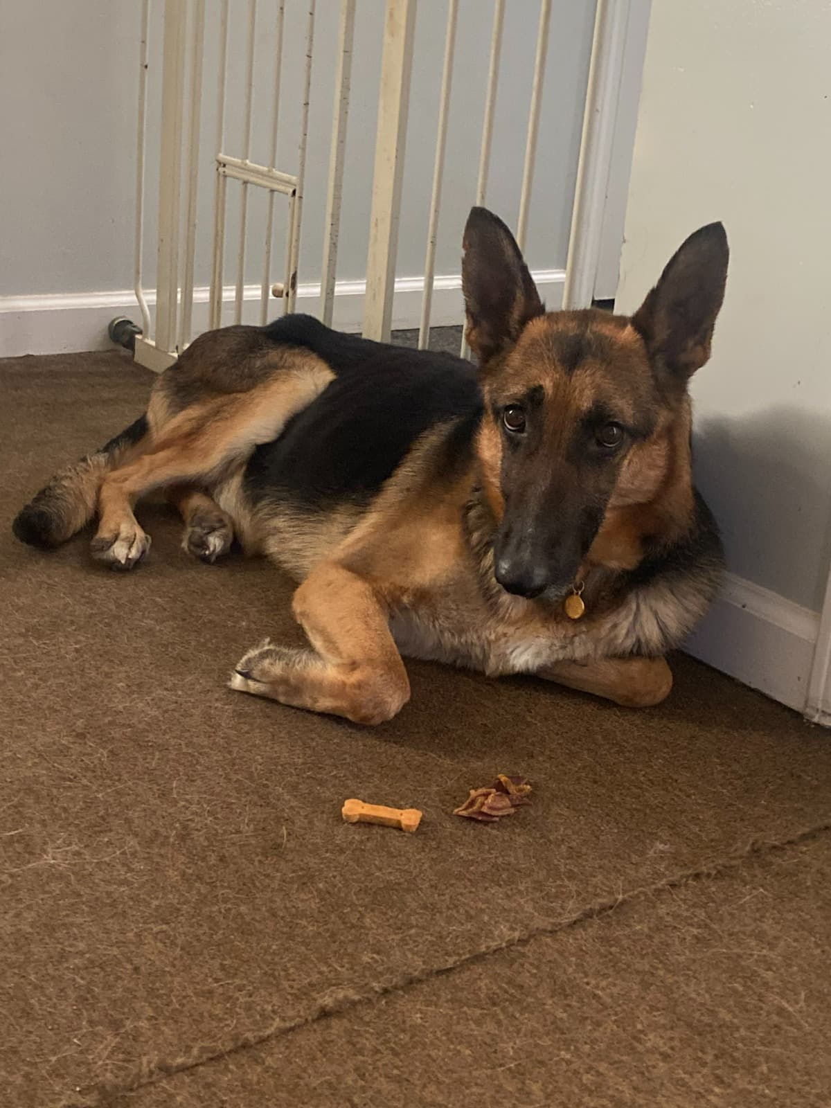 Tsui, now Aspen, was emaciated, had severe upper respiratory infection, heartworm positive, had giardia, not spayed and needed an X-ray of her back leg. She has a dislocated hip. She has gained weight, her upper respiratory infection & giardia has been treated and is gone. She has started her heartworm treatment, her last shots are on 3/27/25. The 1st shot made her really sick, she recovered with the help of her foster mom & our vet's support. I pray the 2nd shots wont make her as sick. She will have a little break, then she will get her spay done, have a little break and then get FHO surgery on her dislocated hip, to fix that and she will be pain free. She still has a long road ahead of her on her journey. We will need to raise another $2500 to cover her medical expenses. You can see her hip poking out in this pic. It's popped out of the socket. Thank you to all of those who have donated already. It takes a village to save these deserving German Shepherds. Thank you for your support.