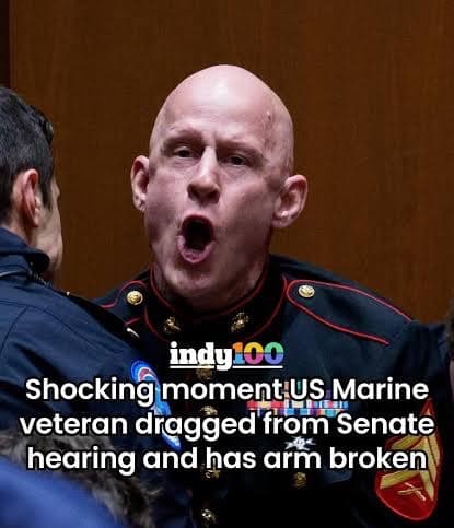 “an audible snap could be heard and a member of the public, in attendance to witness the hearing, repeatedly cried out: “A sitting U.S. senator just broke the hand of a Marine.”
