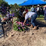 We've lost our mother too soon . The images Above are my 3 youngest siblings at my mother's viewing && this photo below is my youngest sister after we recently cleaned up my mother's grave .