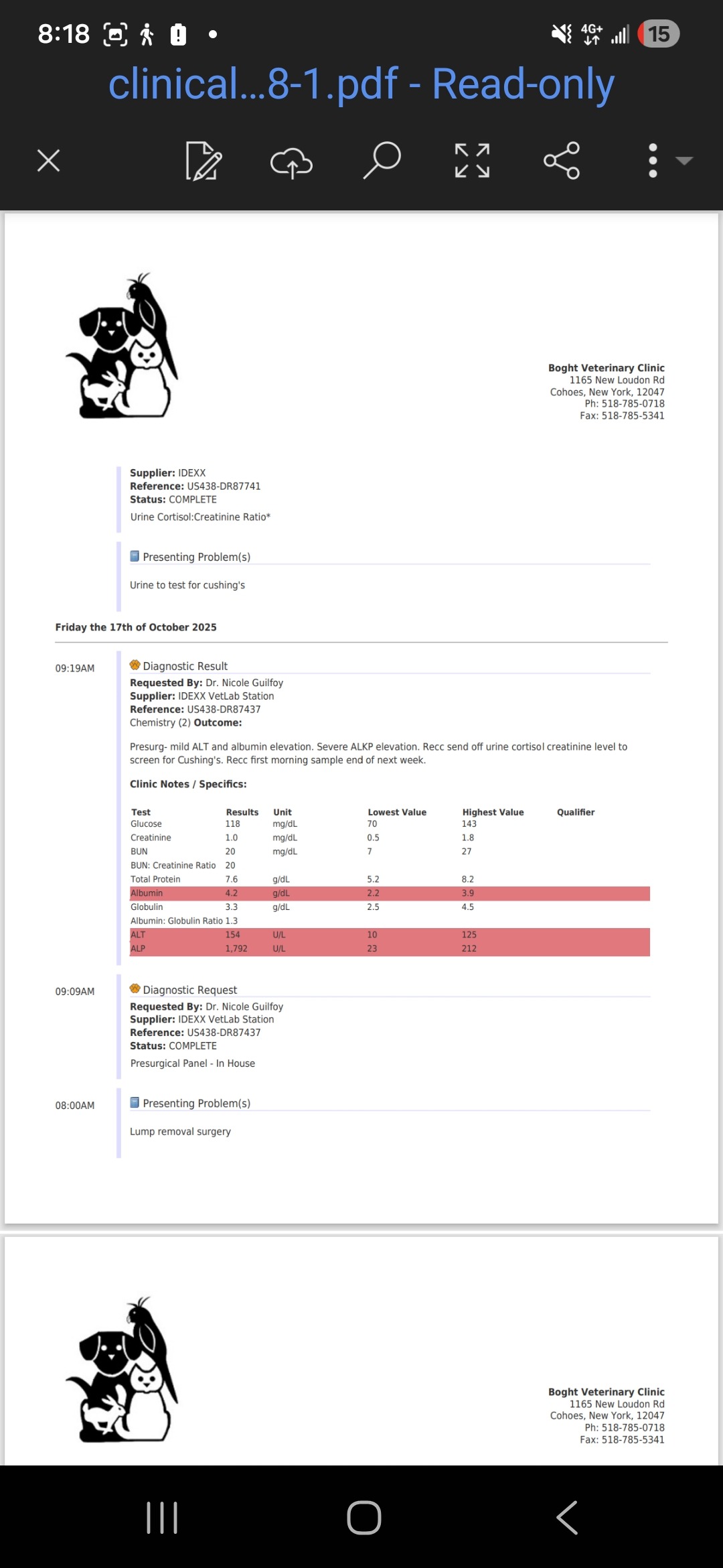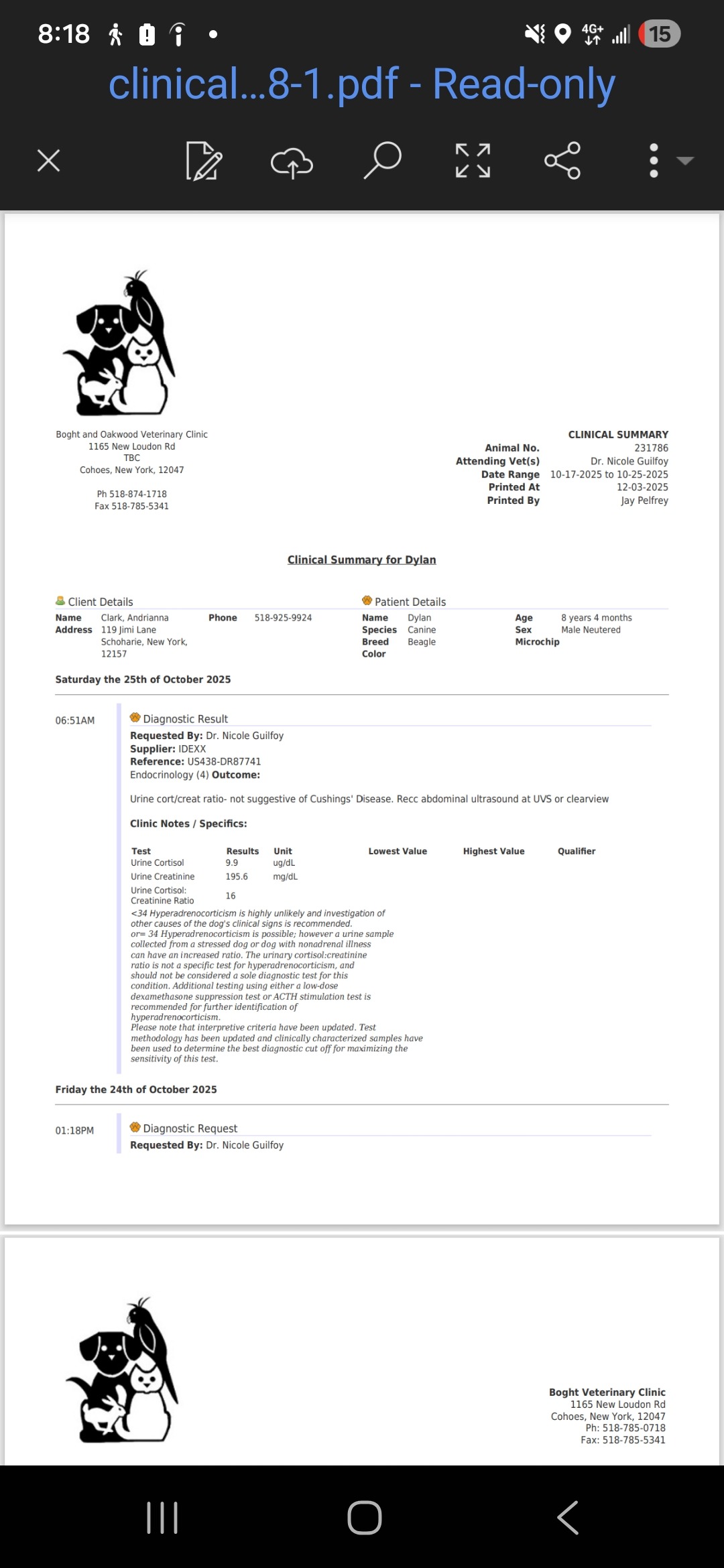 On October 17th, I dropped Dylan off for surgery and bloodwork. Thatâs when everything changed. The vet called and told me his bloodwork came back with very severe elevated levels. They could not proceed with surgery. The vet was concerned about possible Cushingâs disease and sent him home with me.