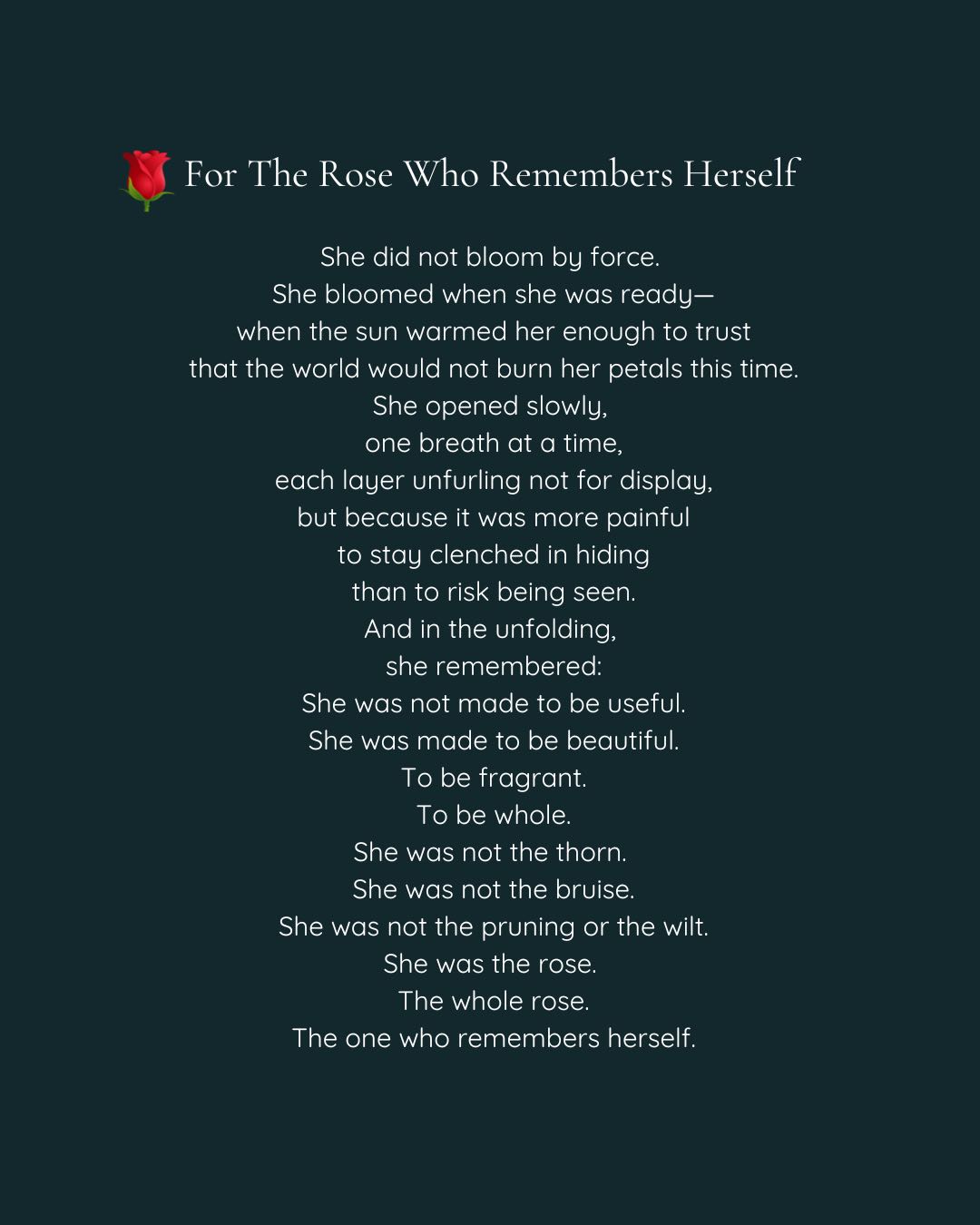 In time, it will birth offerings: poetry, breathwork journeys, soul care spaces — gifts from a woman who has lived what she teaches.